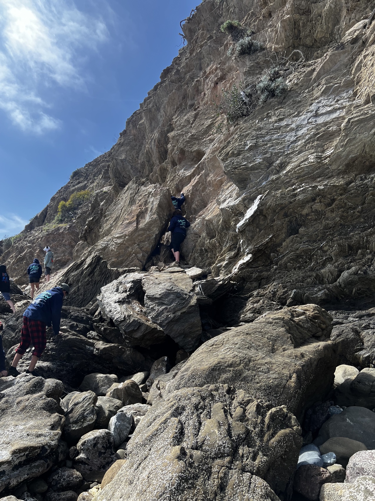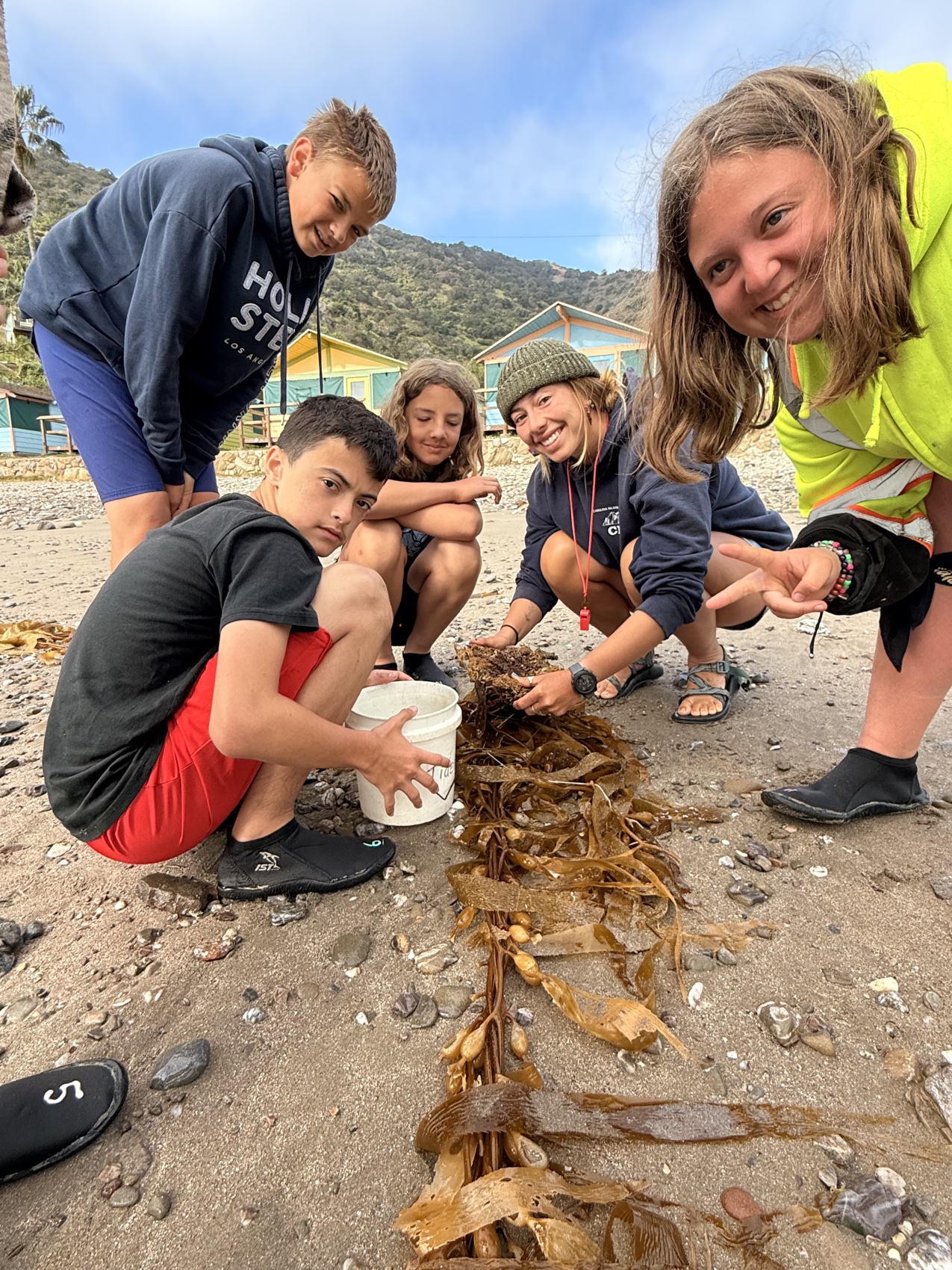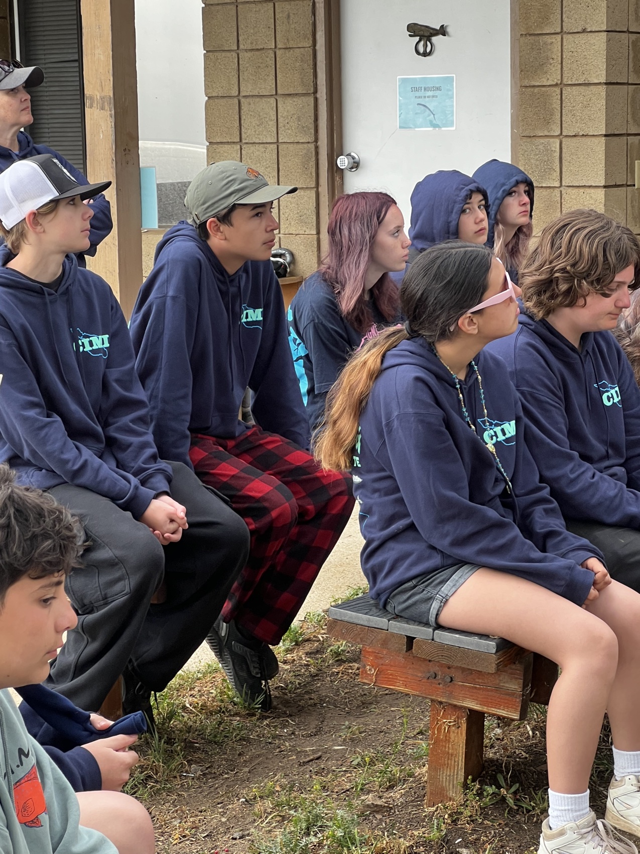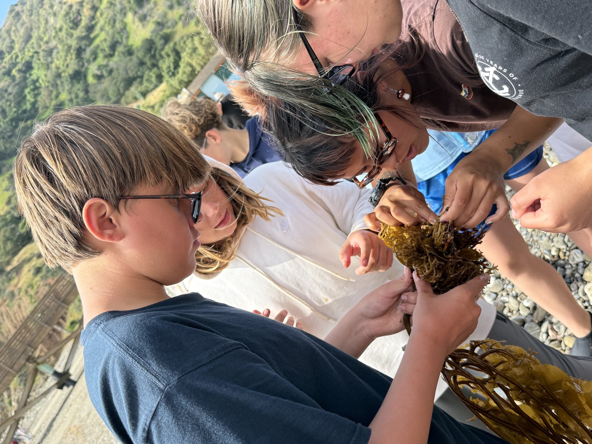After arriving and settling into camp, students wasted no time diving into their first activity—ocean kayaking. Paddling out of the cove, they explored the rugged coastline while learning about the nitrogen cycle and how seabirds and marine life are interconnected. Along the way, they encountered sea lions and caught glimpses of the vibrant orange garibaldi fish swimming beneath the crystal-clear water.