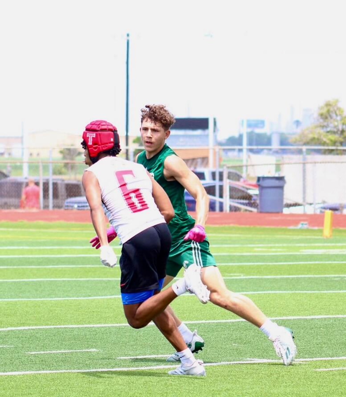 That work paid off quickly. Within two weeks, Alvarez earned a varsity spot at wide receiver in a competitive 5A Texas program—a moment that shifted his mindset entirely.