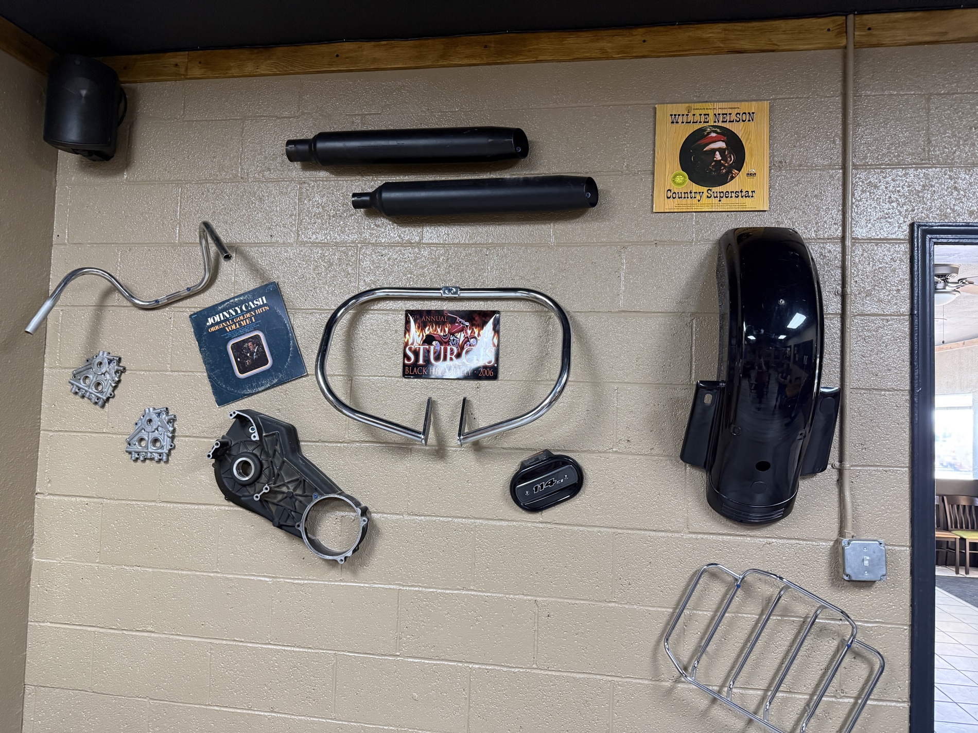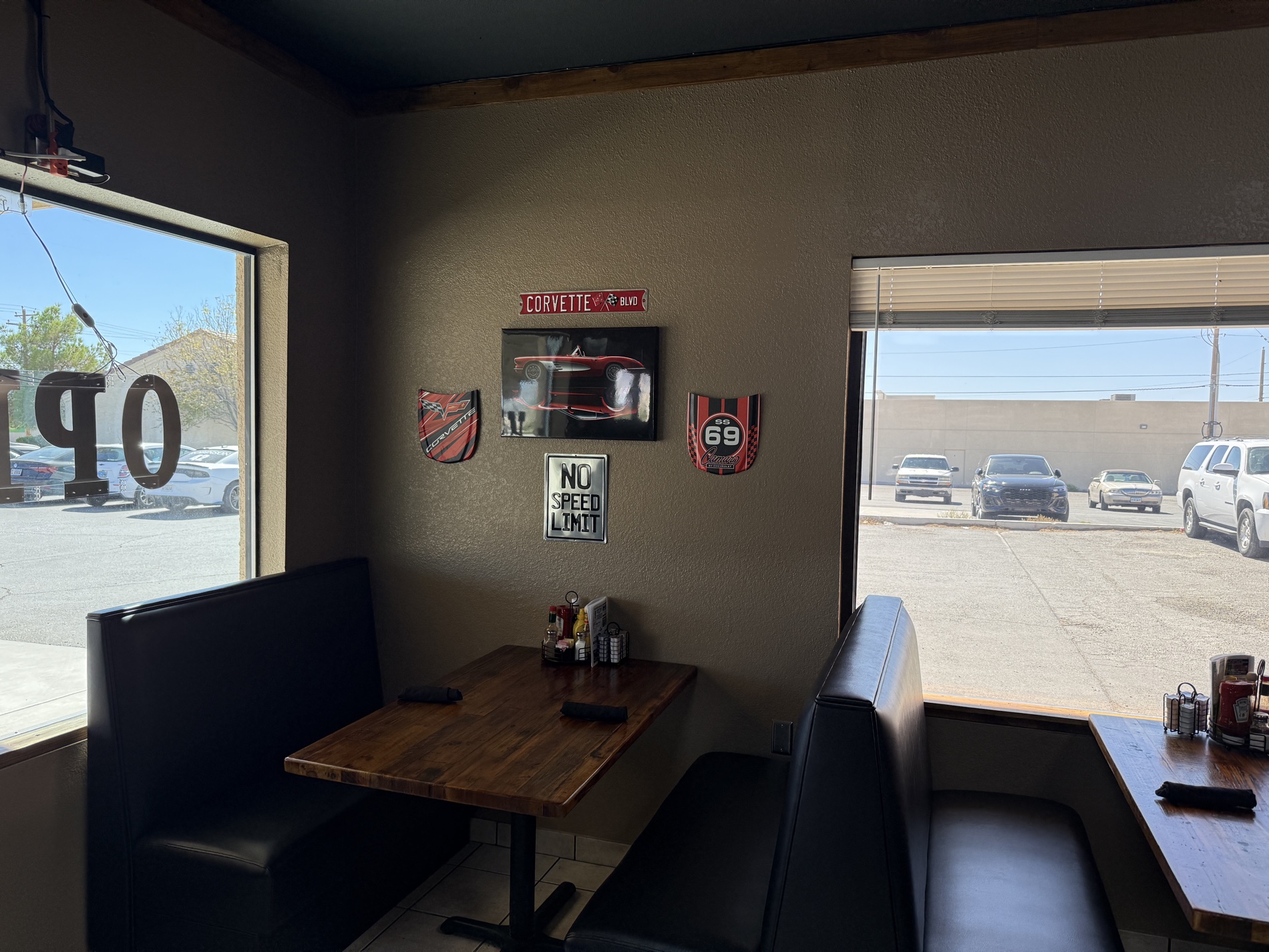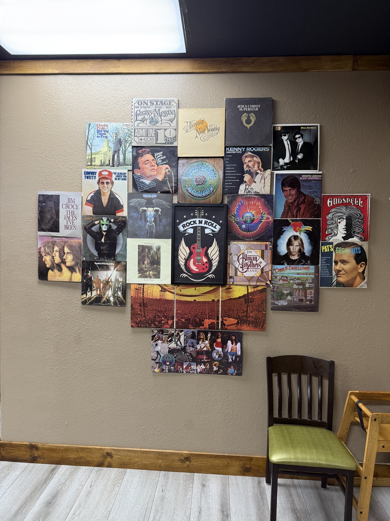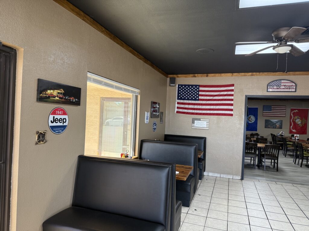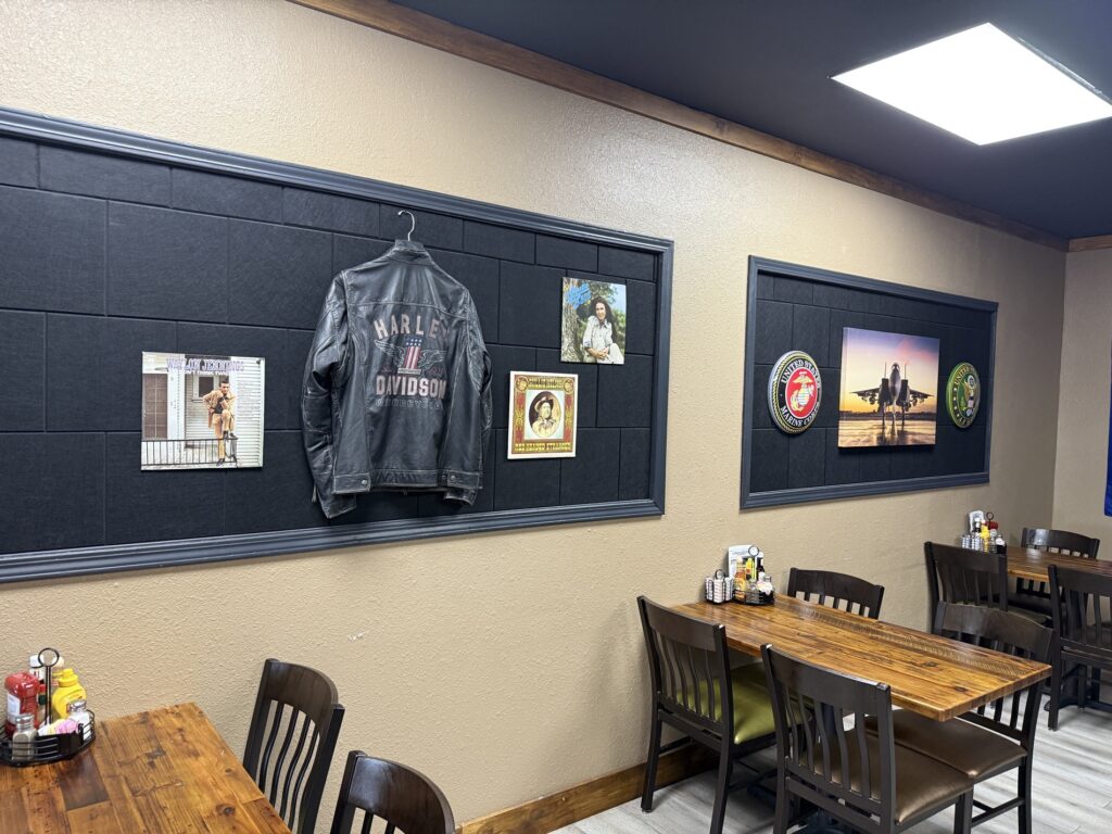 Melissa, his wife, added her creative touch to the décor. “I told him it needed to be classic Americana,” she said. The result is a restaurant filled with themed walls and memorabilia—Ford and Chevy sections, a jukebox, walls of classic albums, motorcycle displays, and patriotic tributes, including military themes. It’s a space that feels at once familiar and unique.