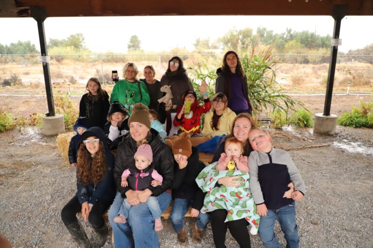 Rain boots, jackets, and eager faces filled the farm’s entrance as nineteen students, ranging from infants wrapped in carriers to seniors in high school, gathered with excitement. According to program founder Mkenzie Manuel, the group is unusually teen-heavy. “Half our students are teenagers,” she said. “They’re actually our largest group, which is really special. They love being hands-on, and they love helping the younger kids learn.”