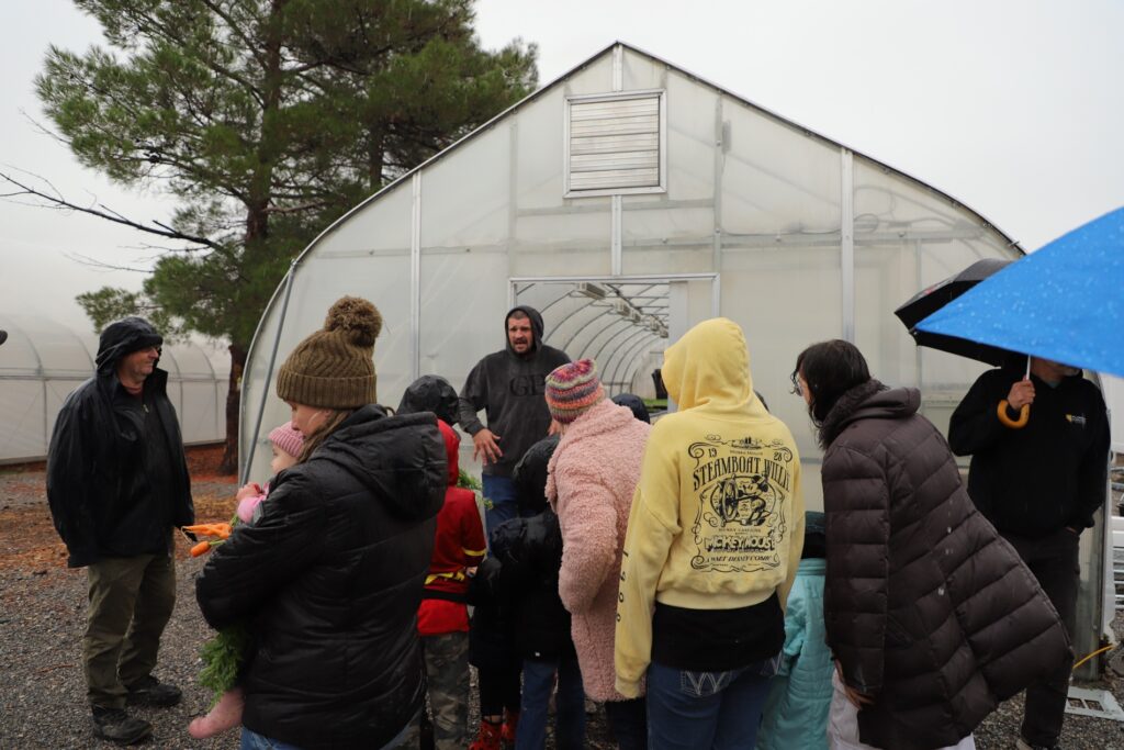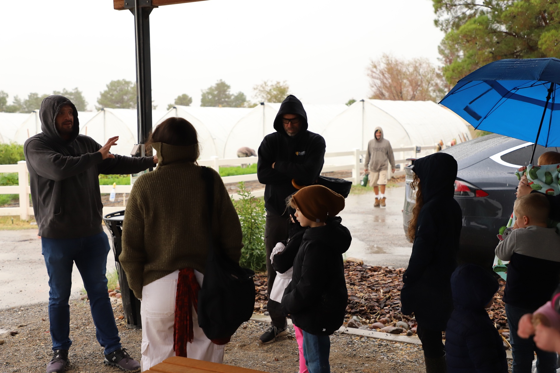 A steady rain fell over Pahrump on Tuesday morning, but it didn’t dampen the enthusiasm of the Pahrump Valley Christian Homeschoolers as they arrived at Green Life Produce’s farm for a field trip months in the making. For group organizer and parent volunteer Jamie Giammarino, the weather was barely a consideration. “They messaged me this morning asking if we were still coming,” she said with a smile. “I told them we’re coming rain or shine. These kids dress for the occasion.”