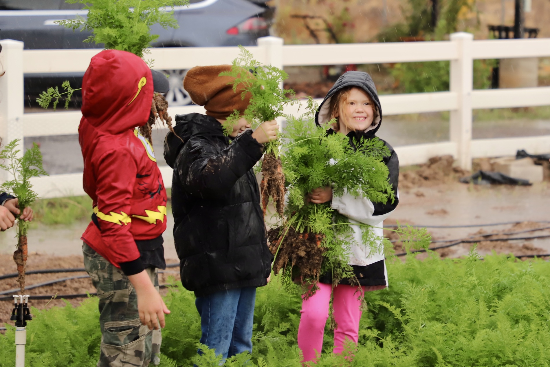Parents helped little ones rinse vegetables, and students compared their harvests, proudly holding up carrots like trophies. Steve joked that the “master gardener sometimes has to clean up too,” reminding the kids that farming, while fun, is also physical work.