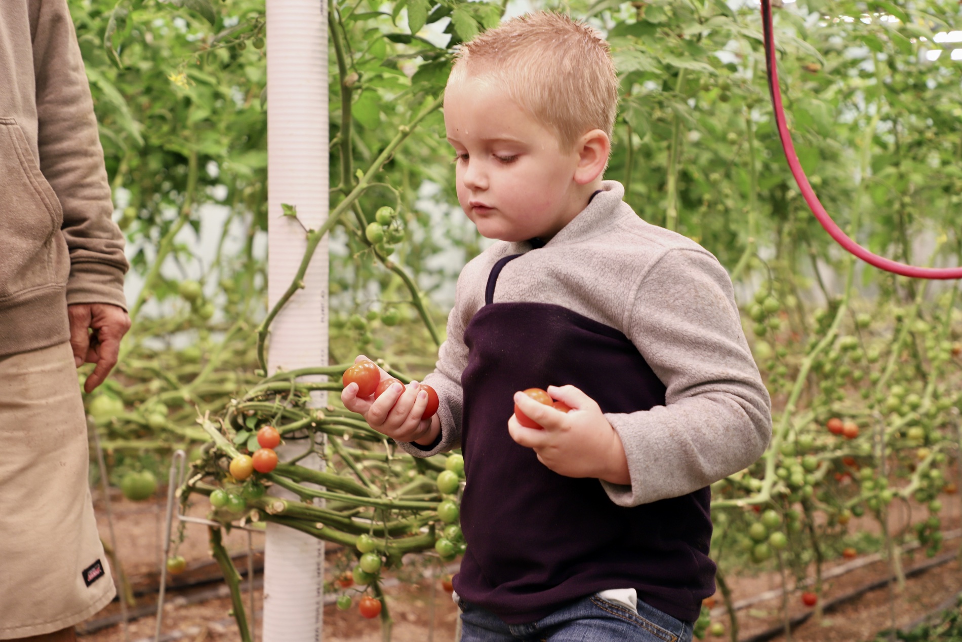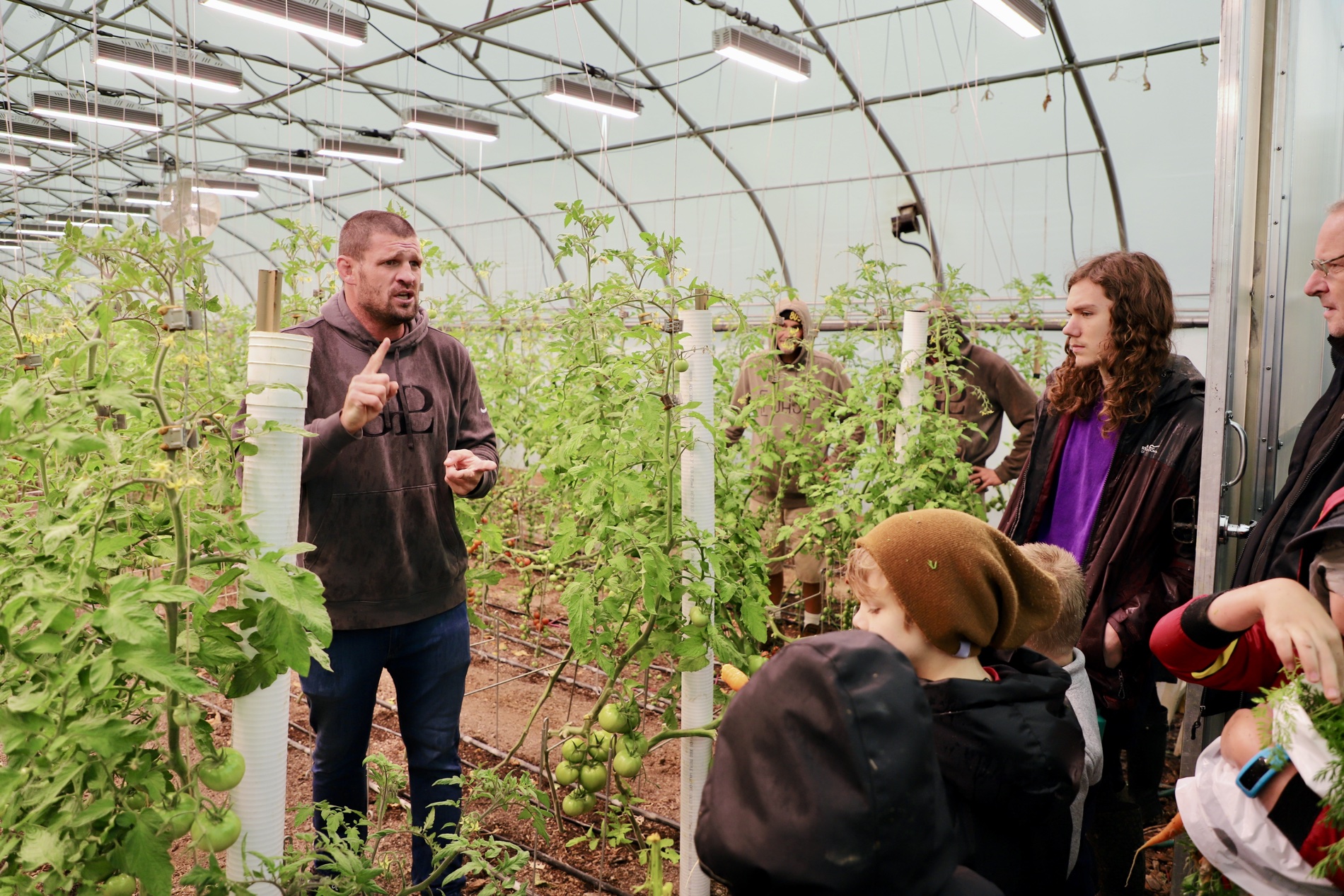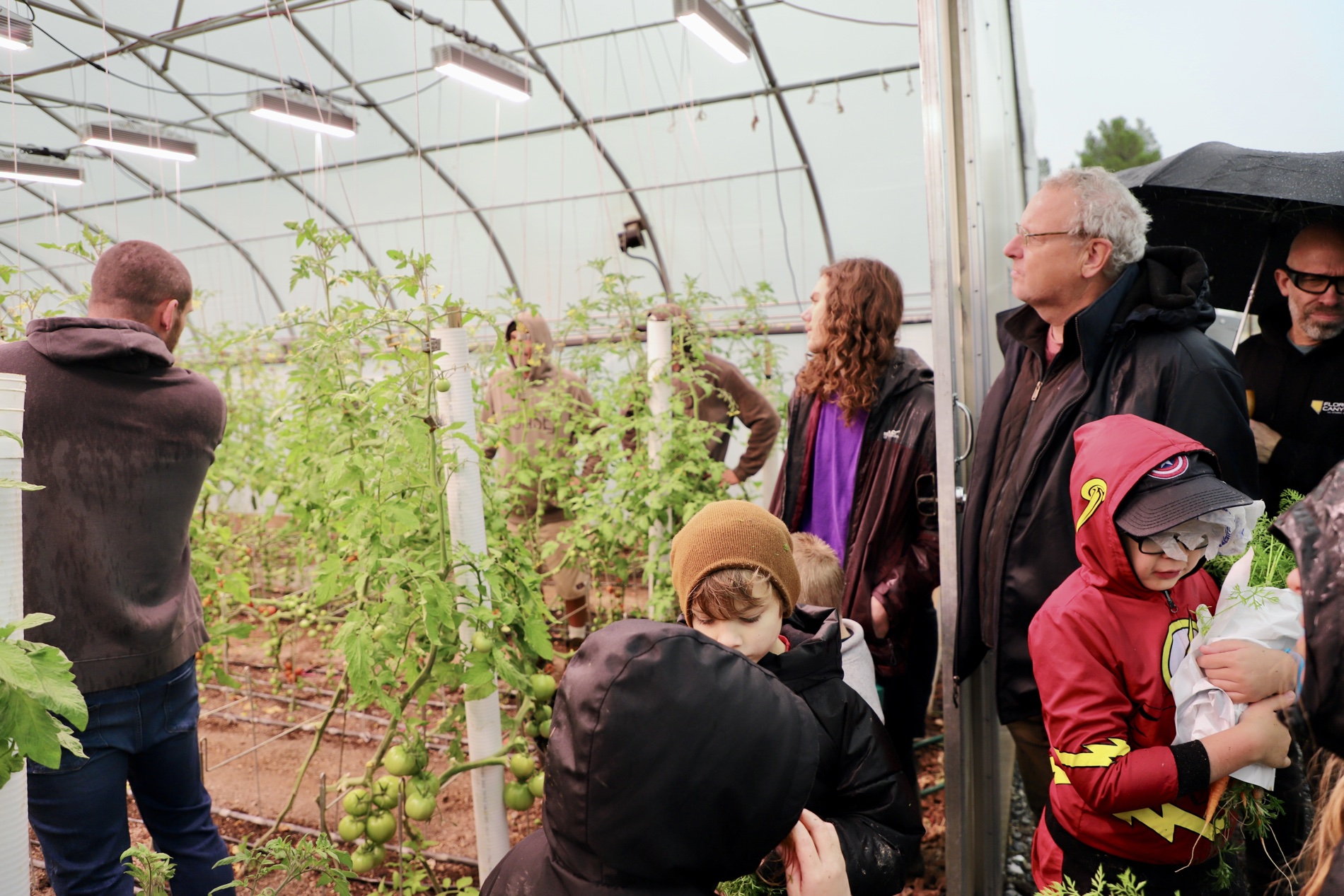 The tour moved to the greenhouse area next, where families could see the controlled environment that allows the farm to grow crops efficiently year-round. Students asked thoughtful questions about lighting, composting, and regenerative practices. When asked how they fertilize the greenhouse crops, the guide explained that even there, the philosophy remains the same: feed the soil, not the plant.