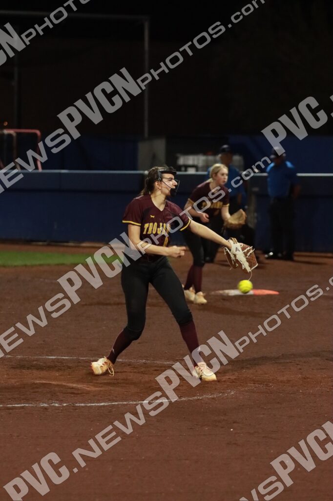 Later innings saw additional pitching rotations as Veloz entered the circle, giving the Lady Trojans another opportunity to evaluate pitching depth. McHugh fielded a hard ground ball cleanly for an out, and the defense continued to work through challenging at-bats from Bishop Gorman’s lineup.