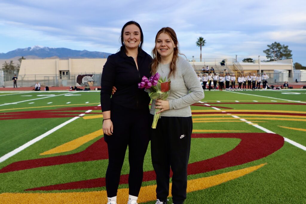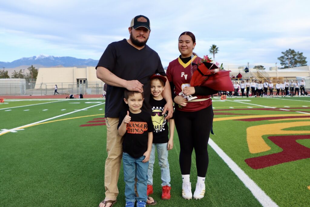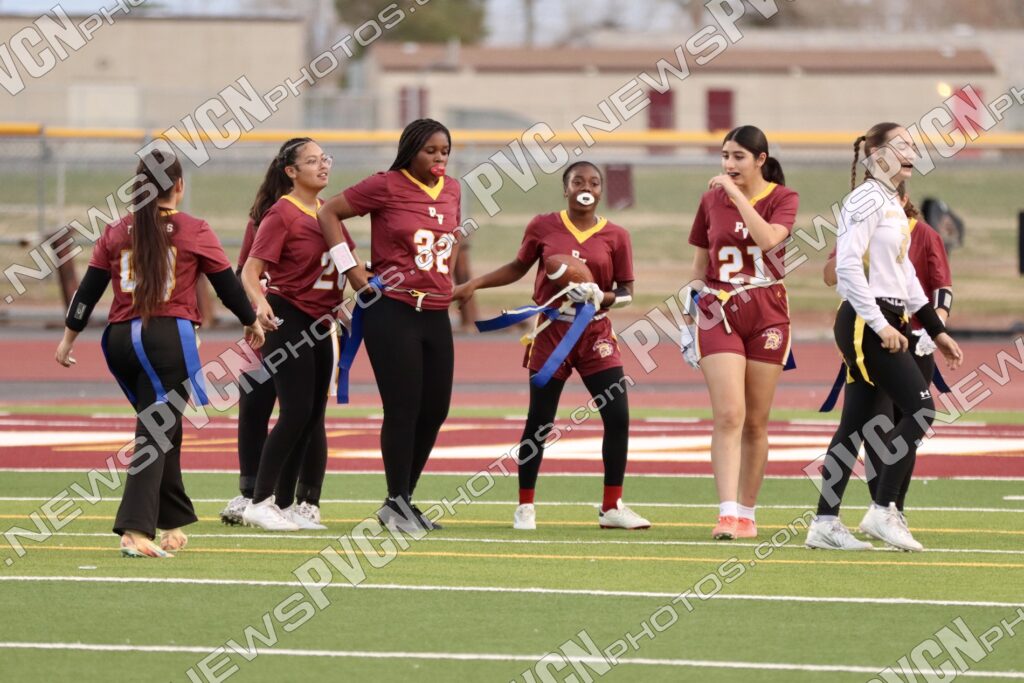 The Pahrump Valley High School girls’ varsity flag football team wrapped up its home schedule on Thursday, February 5, hosting the Amplus Archers in a game that reflected the program’s growth, determination, and team-first spirit throughout the season. Before kickoff, the evening opened with an emotional Senior Night ceremony as six Lady Trojans were honored alongside their families for their dedication to the program. Recognized seniors included Leah-Marie Cooper, Aaliyah Fries, Diona Nixon, Tiffany Sartin, and Savannah Thompson, as well as manager Delaney Abbatte.