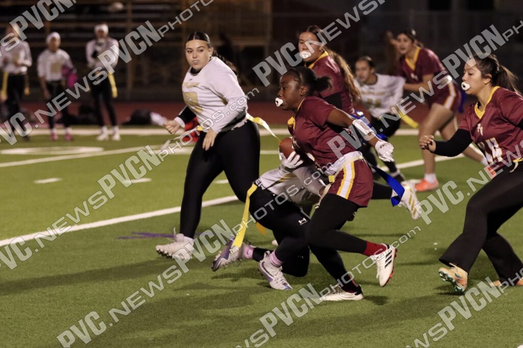 The Lady Trojans maintained their defensive intensity into the second half. Ember Castaneda delivered a strong flag pull early in the third quarter, while Nixon broke up a long fourth-down pass attempt to halt an Amplus drive. The Trojan offense continued to push forward with rushing attempts from several players, demonstrating the team’s willingness to spread opportunities across the roster.