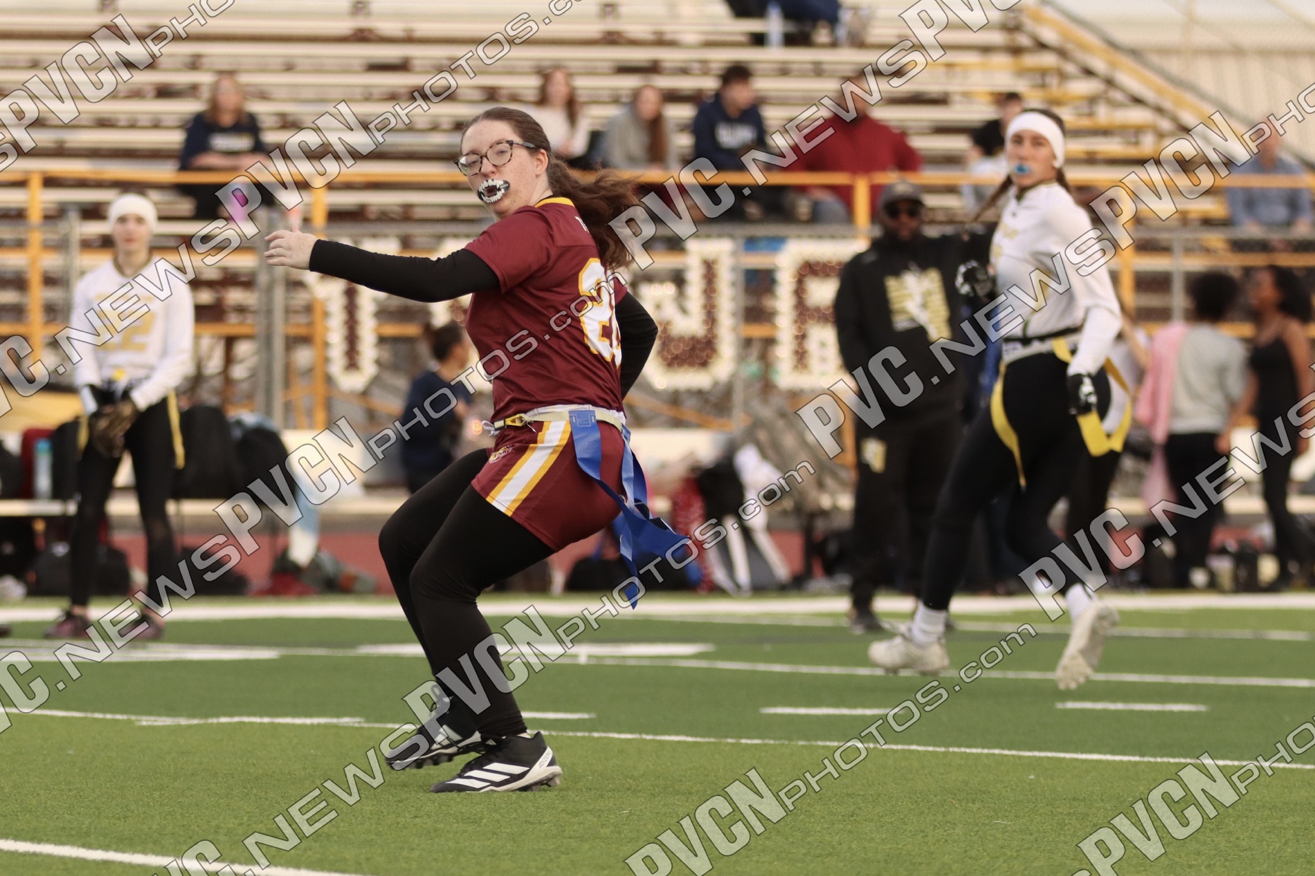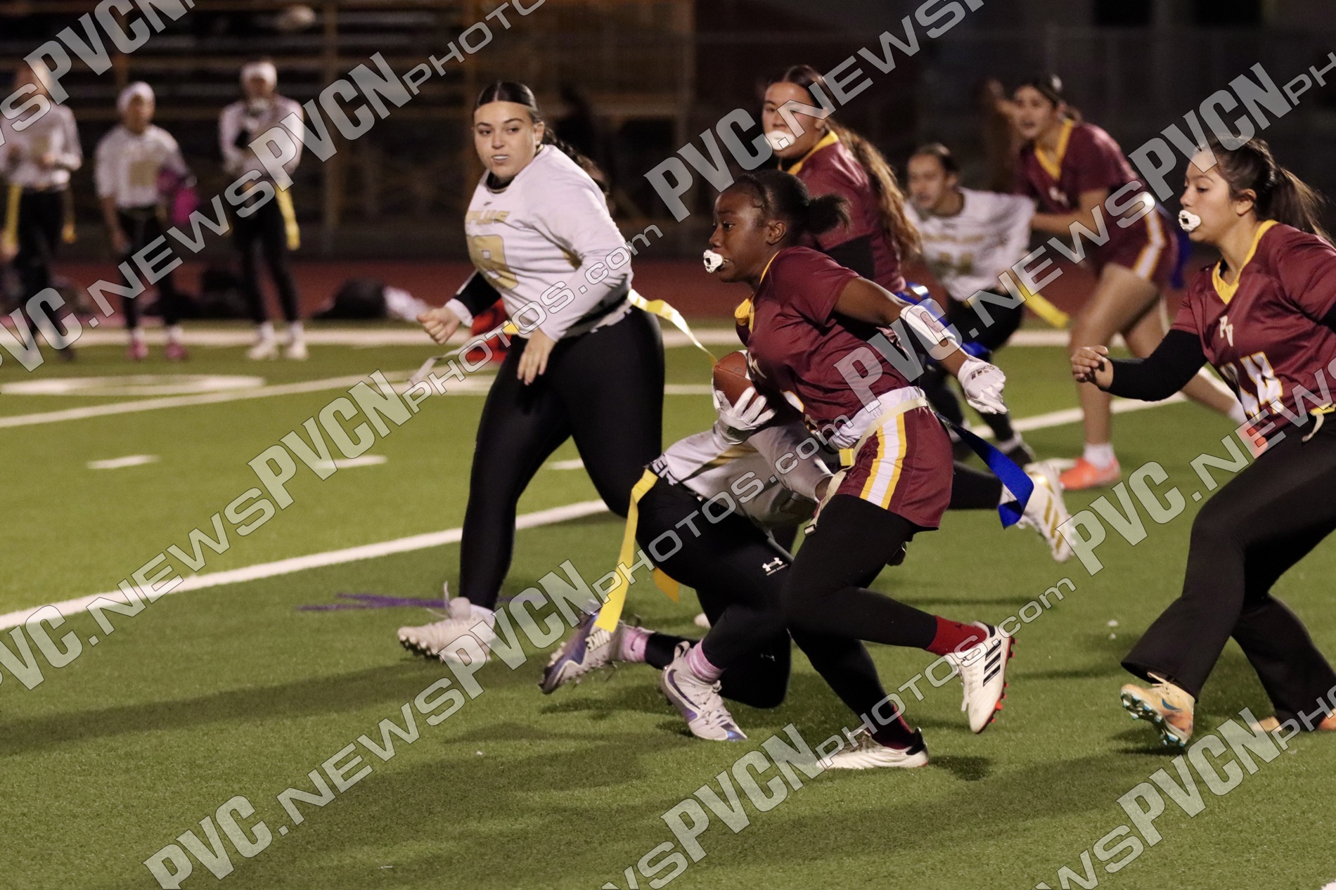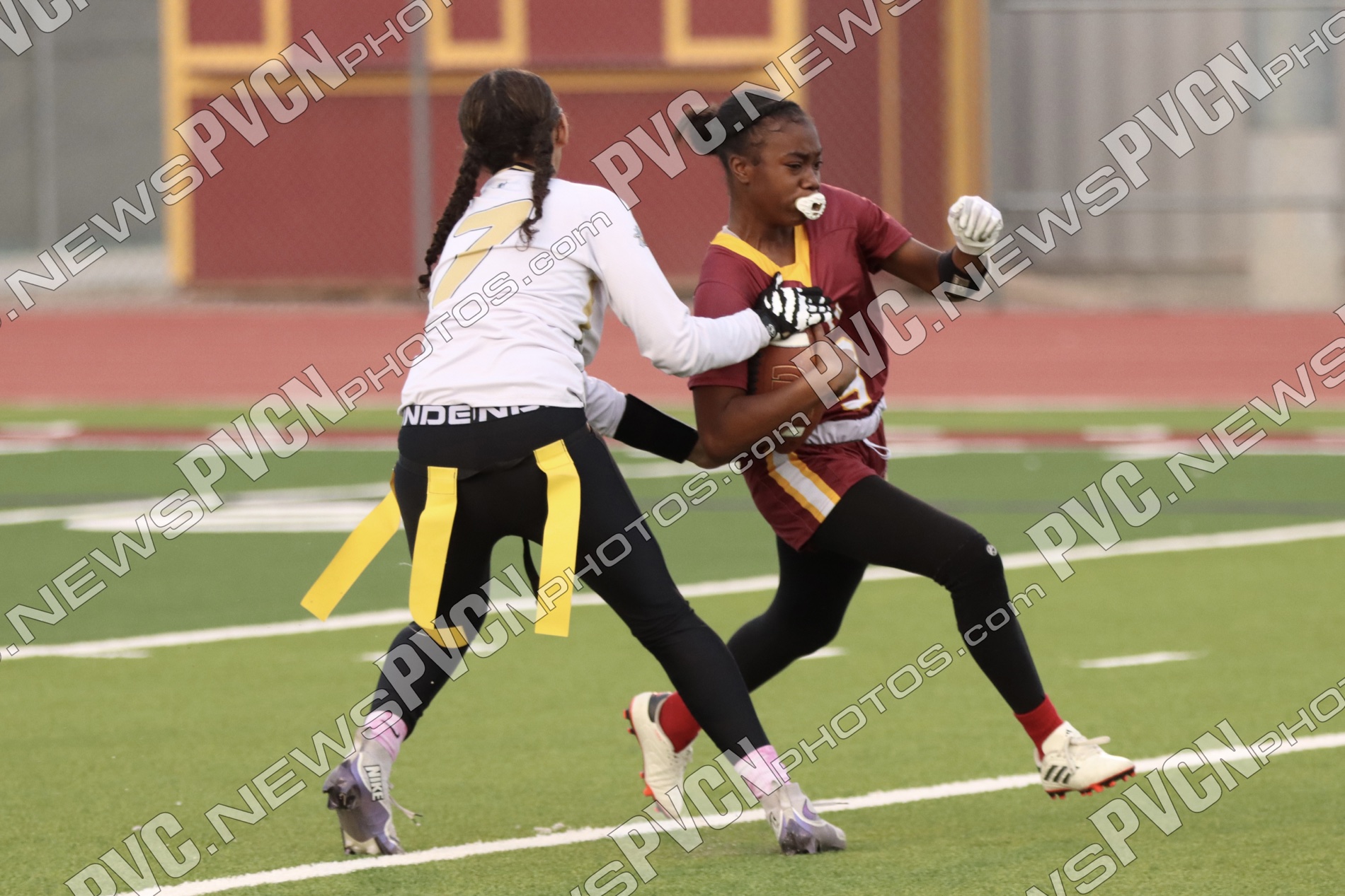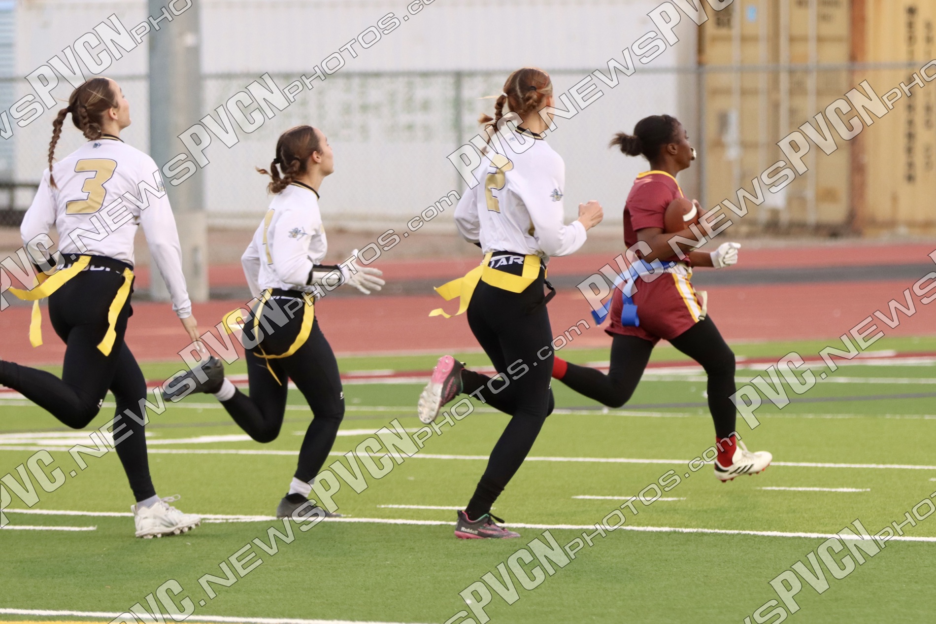 The defense responded immediately, forcing a turnover on downs midway through the first quarter. The Trojans continued to battle defensively as Ariana Lozoya and Nixon delivered key flag pulls to prevent the Archers from breaking big plays along the sideline. Amplus eventually found the end zone late in the opening quarter, but the Lady Trojans quickly answered in the second.
