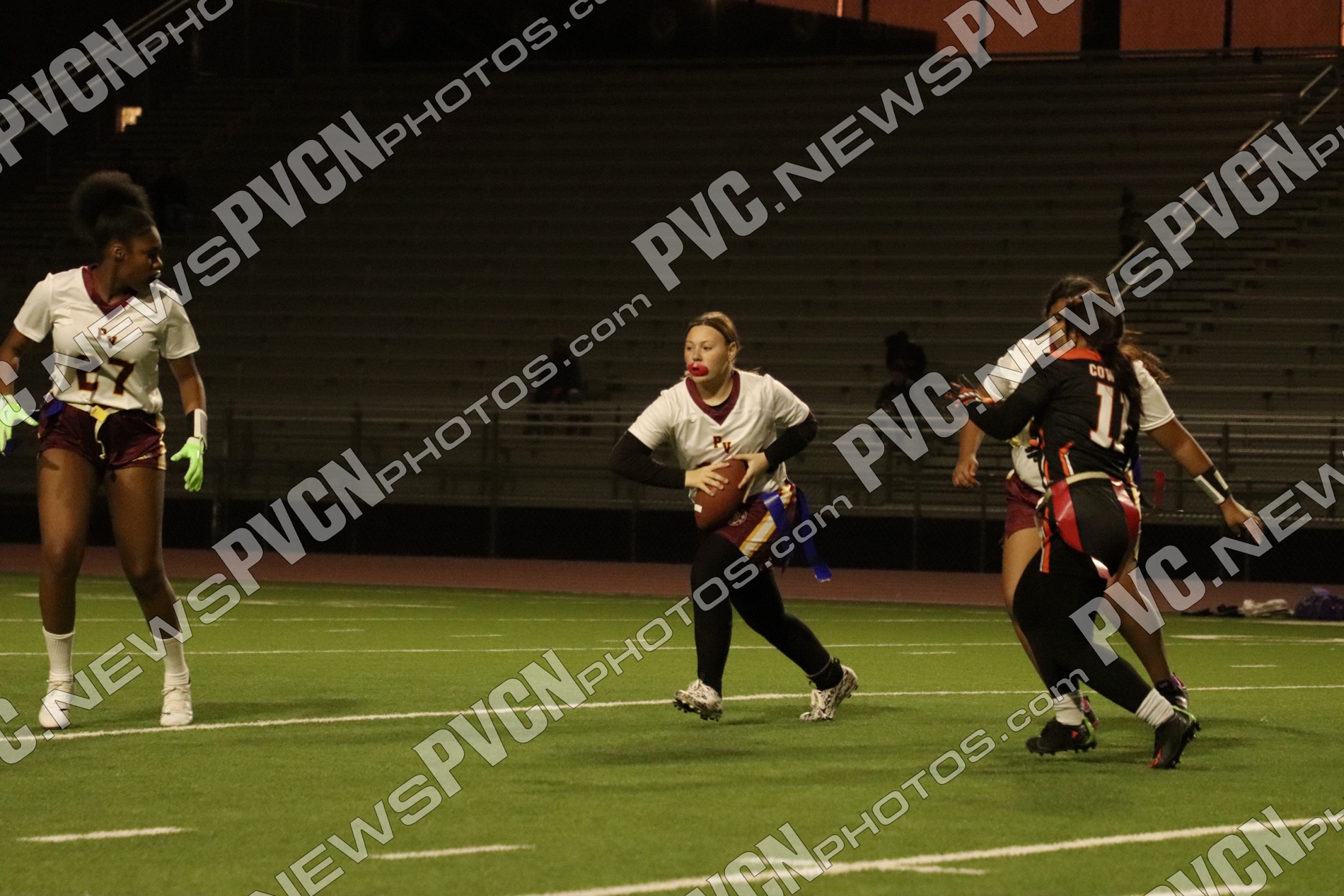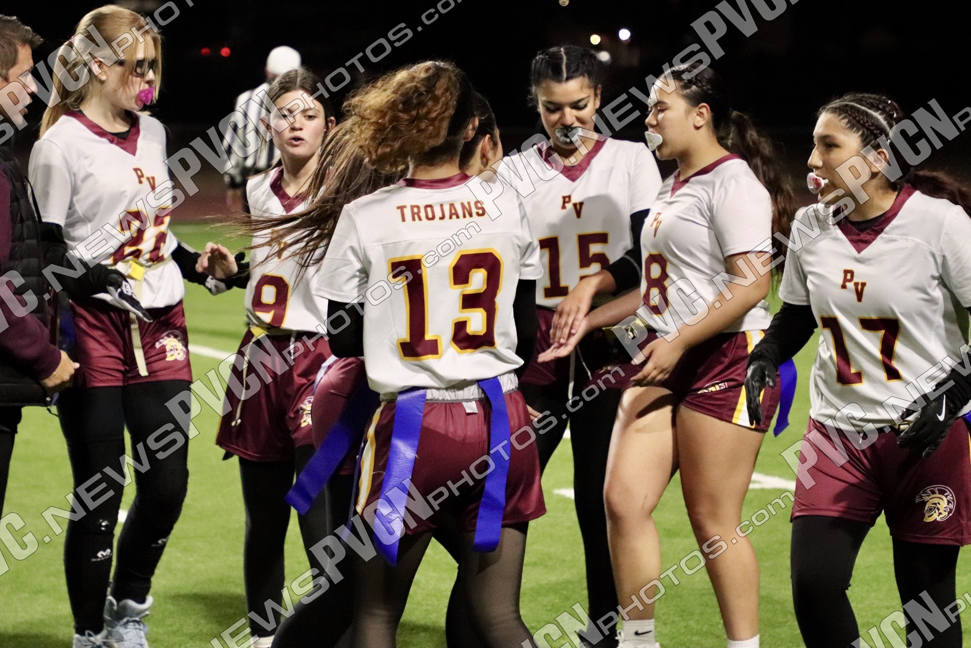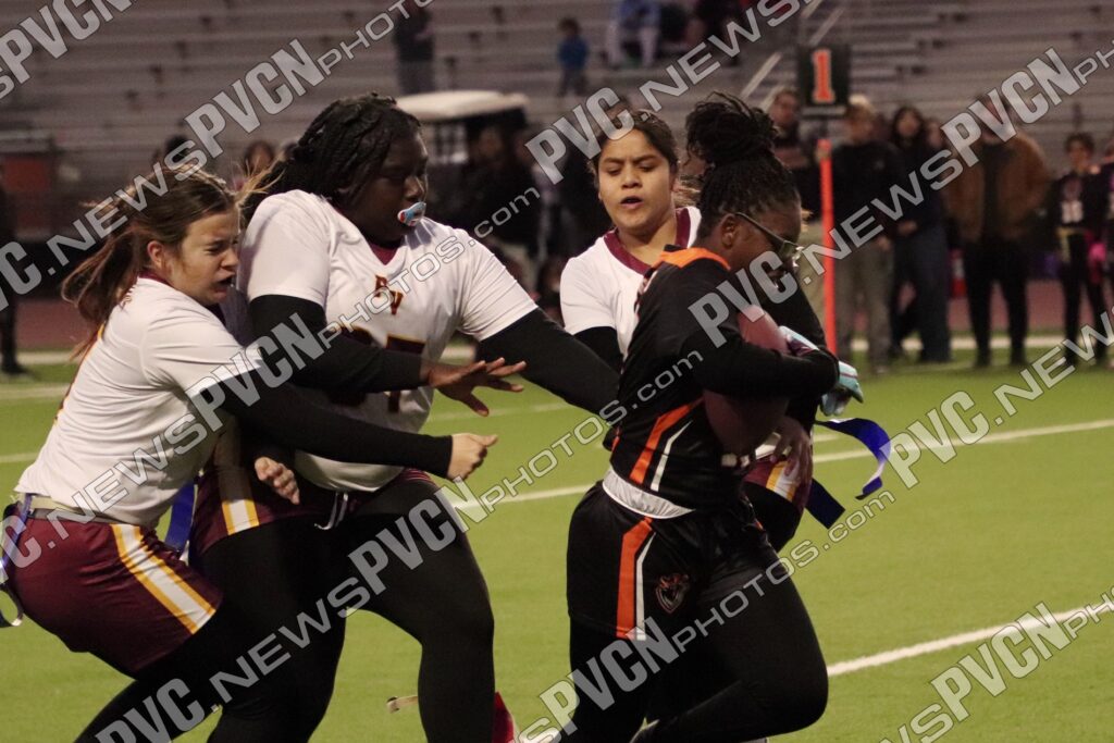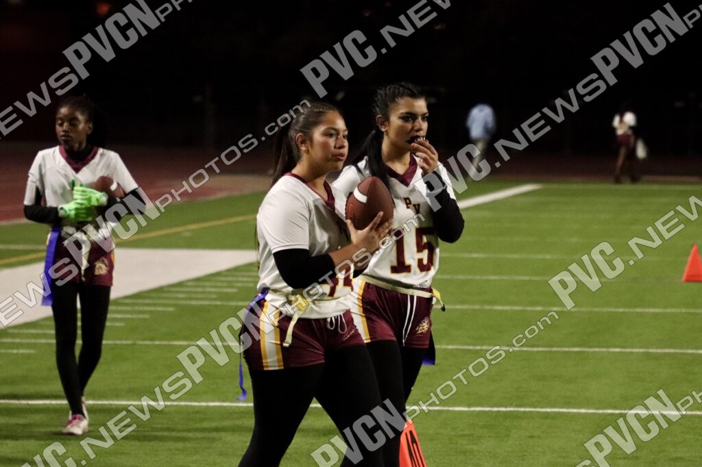 The JV team opened the day and immediately leaned on its defense to slow Chaparral’s early momentum. Biannet Lozano Chávez was a consistent bright spot, pulling multiple flags to prevent touchdowns and stopping conversion attempts. Tianna Beaver added a key pull to halt a Chaparral drive, and Keelee Gieni came up with important stops on the run. Kylie Horn and Beaver both made impactful plays at the line, with Beaver recording sacks during the game. Arianna Lozoya also broke up passes and nearly came away with interceptions, while Carmella Goudeau made tackles that limited Chaparral’s gains. Offensively, Zoey Gonzalez gave the Trojans a spark with a first-down run, and quarterbacks Alexa Kumm and later Diona Nixon worked to keep drives alive. Nixon picked up multiple runs and showed composure directing the offense late in the game. Despite their efforts, PVHS was unable to reach the end zone, and the JV contest ended with a 26–0 final.