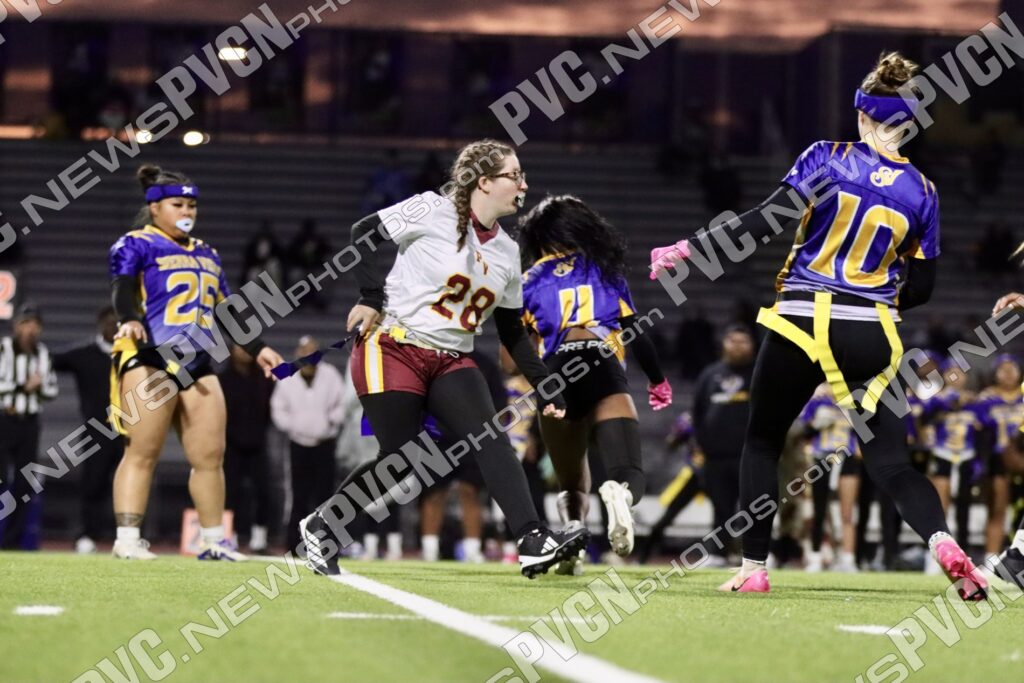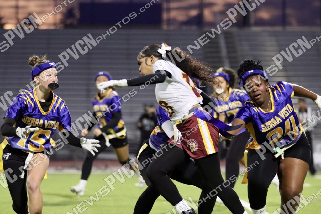 The Pahrump Valley High School girls’ flag football team traveled to Sierra Vista High School on Friday, January 23, to face one of Nevada’s top-ranked programs in a matchup that also included a special pregame experience with the Las Vegas Raiders.