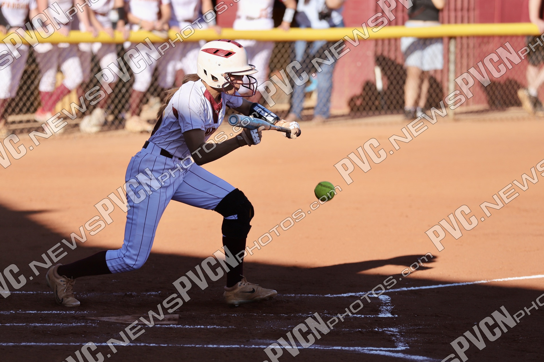 The Lady Trojans tied the game in the top of the third after capitalizing on defensive miscues by Yuma Catholic. Riley Saldaña was hit by a pitch to lead off the inning and Sadie Freeman reached on an error by the pitcher while advancing to second on the play. Saldaña moved to third during the error.