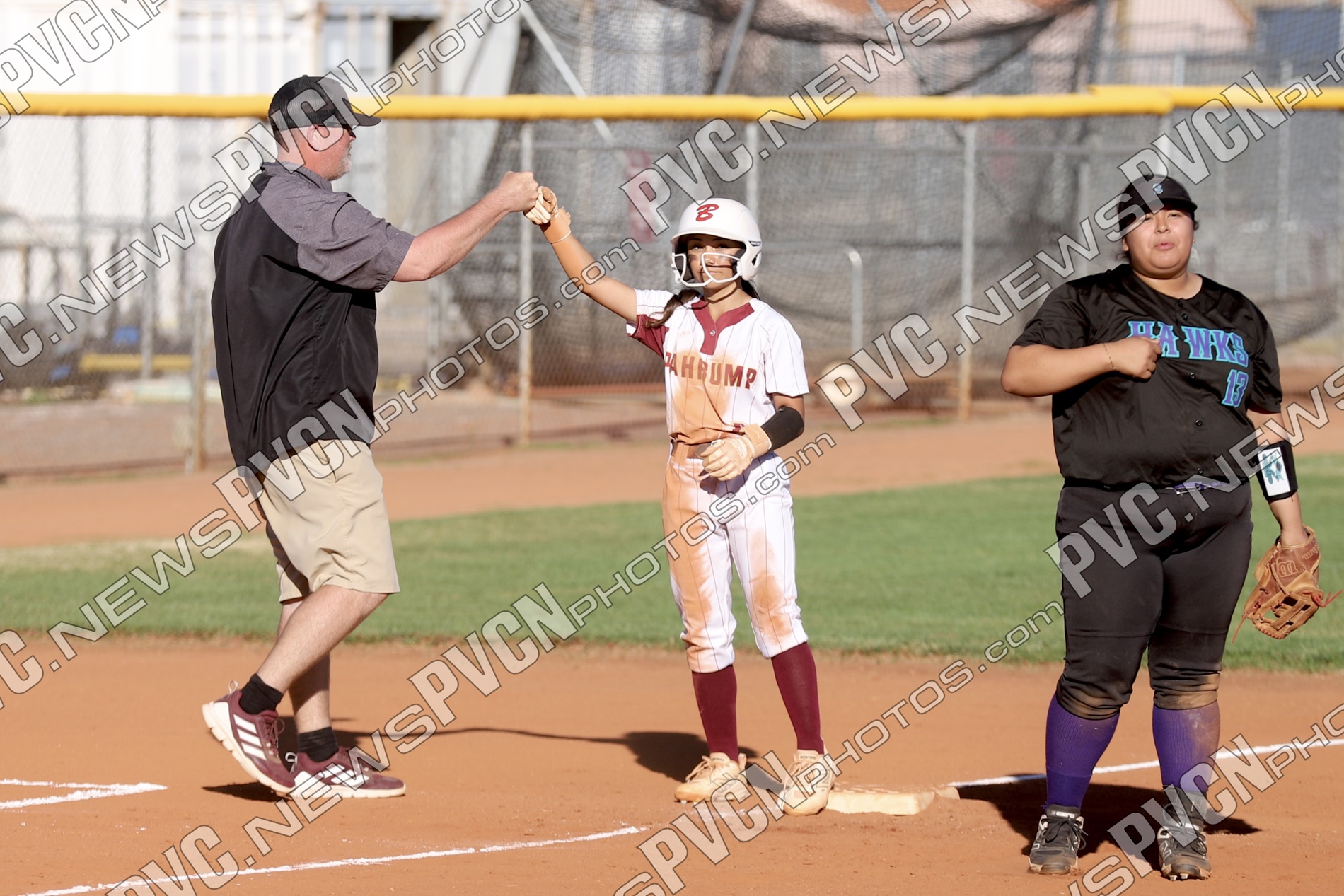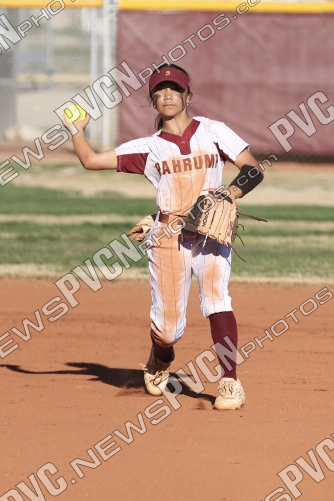 Pahrump Valley’s defense again held strong in the bottom of the fourth with a groundout to Middaugh at shortstop, a line out back to Hayes and a fly out to left fielder Myah Krolczyk.