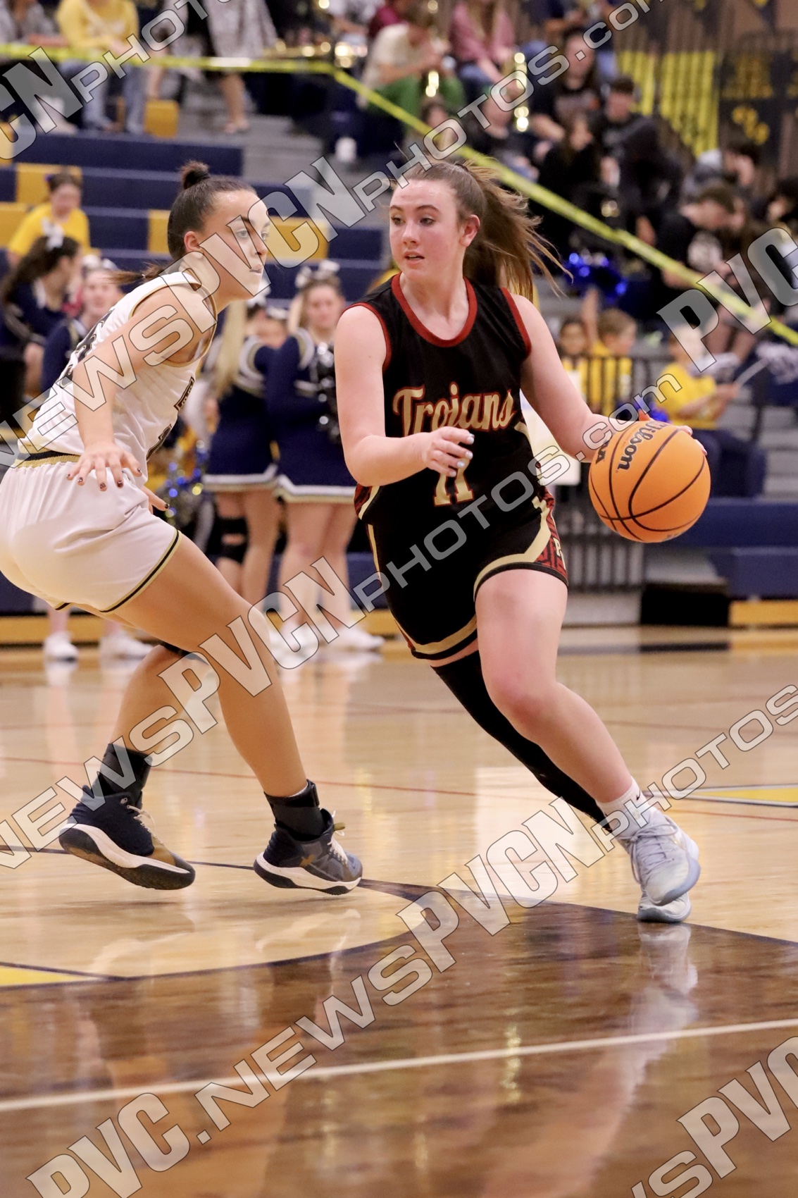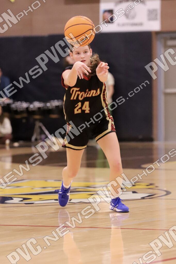 The Trojans won the opening tip but struggled early to find rhythm offensively, as both teams traded turnovers and missed opportunities in a tightly contested first quarter. With just under five minutes remaining, Riley Saldaña attacked the paint, finishing through contact for an and-one to put Pahrump Valley on the board. After Boulder City answered, the Trojans found momentum late in the quarter. A three from the left wing gave Pahrump Valley the lead, and Addi Nelsen followed with a deep triple from the top of the key in the final seconds to send the Trojans into the second quarter up 9–4.