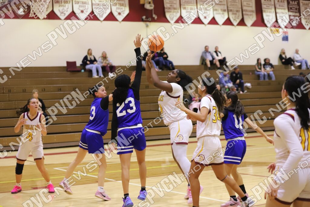 The fourth quarter became a test of composure. Coral Academy tightened the score to 19–17, but the Lady Trojans responded with teamwork and poise. After a long pass over the press, Adrian Rogers finished a crucial basket, sparking a late push. Moments later, she added another post shot, giving PVHS breathing room as they moved ahead 23–17.