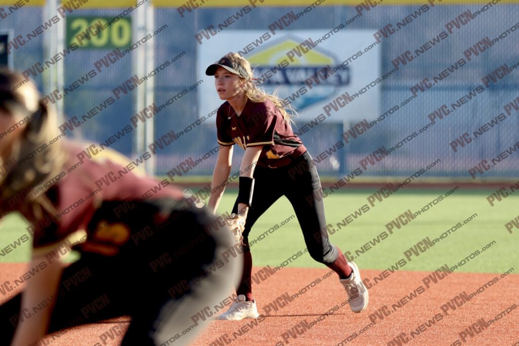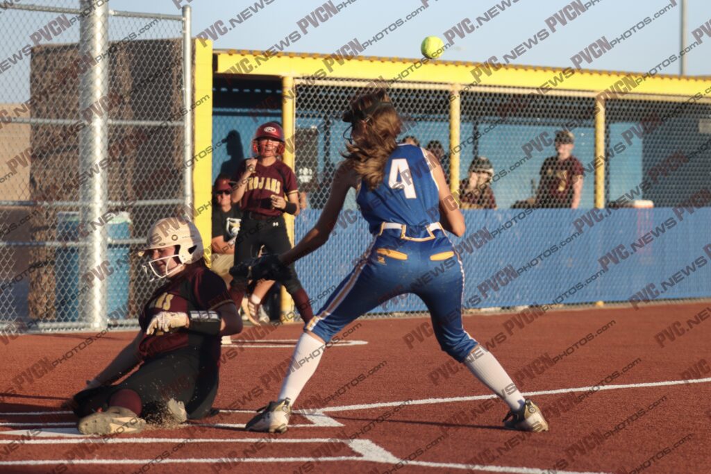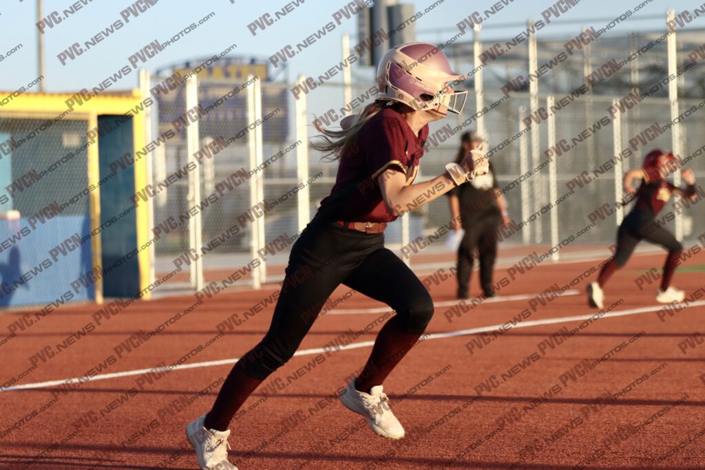Batting first, the Trojans immediately put pressure on the Pirates’ defense. While Aviana Michel was retired to open the game, Quinn Kaucky worked a walk and Elianna Stepp entered as a pinch runner. Claudia Lopez followed by reaching after being hit by a pitch, and Pahrump Valley quickly turned to aggressive baserunning to create scoring opportunities. Stepp took advantage, stealing home for the game’s first run, helping the Trojans jump out in front despite a later rundown at the plate that ended the inning.