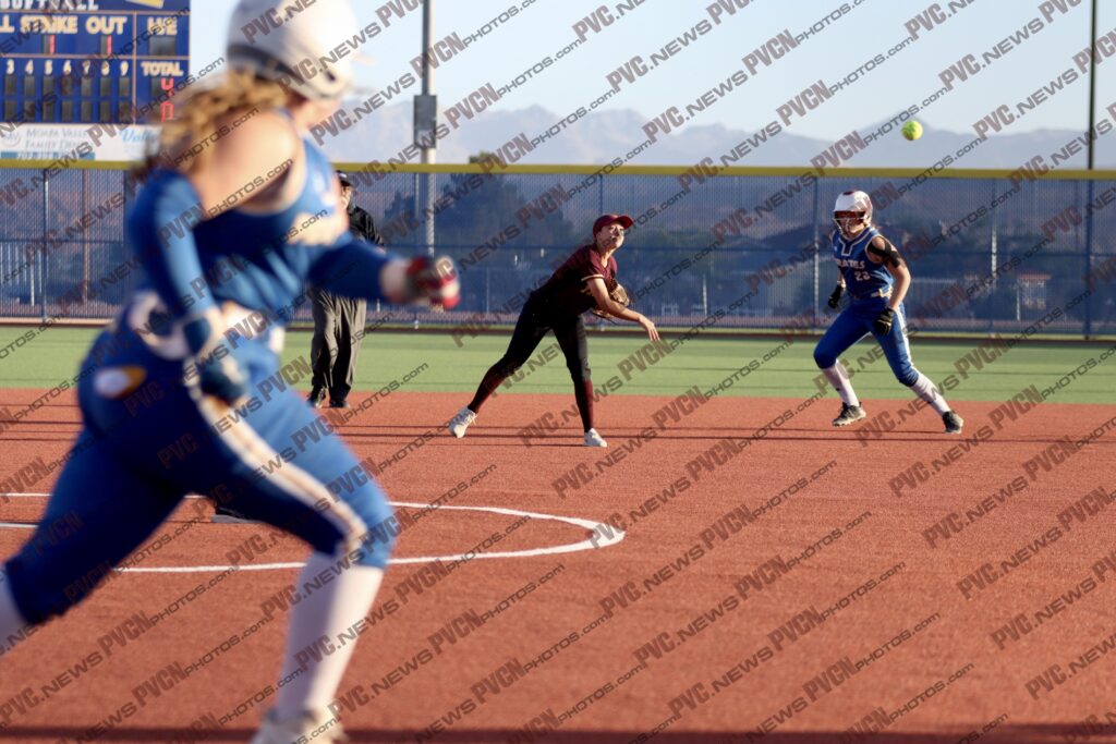 The third inning proved to be the turning point, as Pahrump Valley broke the game open. Bella McHugh reached on an infield play and immediately made an impact on the bases, stealing second and third before scoring on a hit by Saldaña to make it 5-0. Ivy followed with a walk to load the bases, and Alexa Kumm delivered a key extra-base hit to the outfield, driving in runs to extend the lead to 7-0.