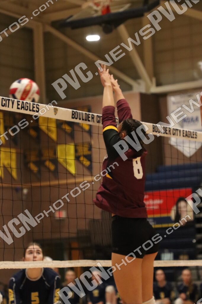 In the third set, the Eagles again built an early advantage, but the Trojans refused to fold. Kamanu’s aggressive swings, Ware’s timely kills, and serves from Myah Krolczyk fueled a late rally that brought Pahrump within striking distance. The Trojans pulled to within two at 22-20 before Boulder City held on for the 25-22 win.