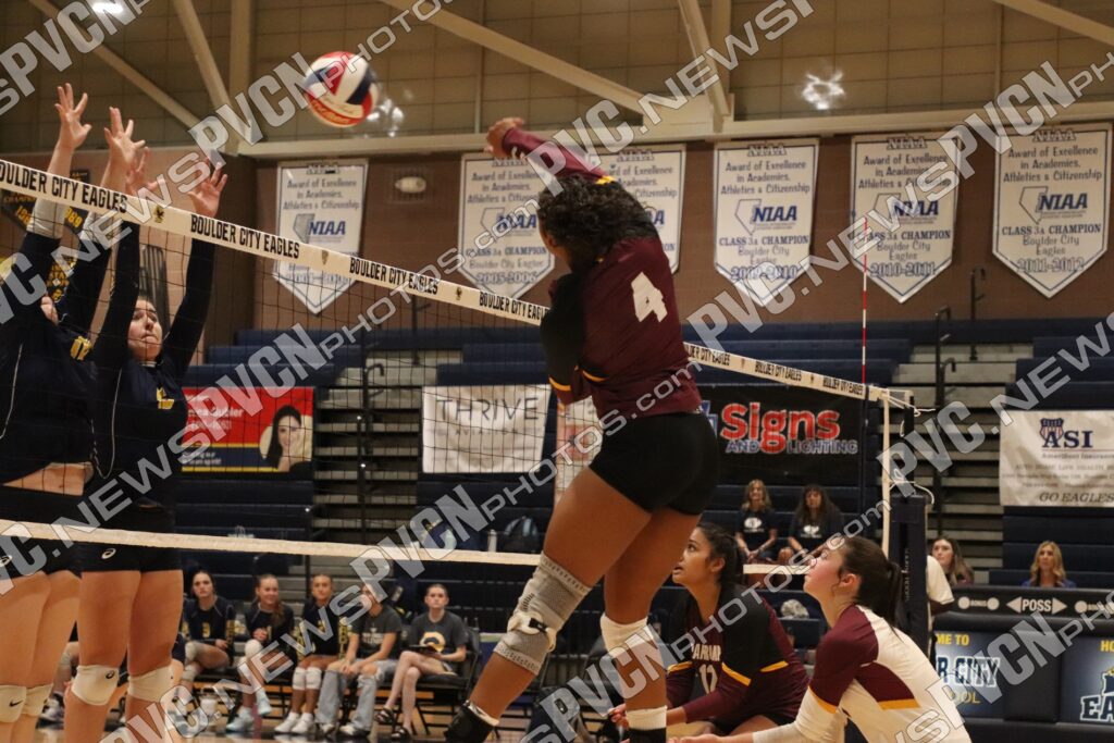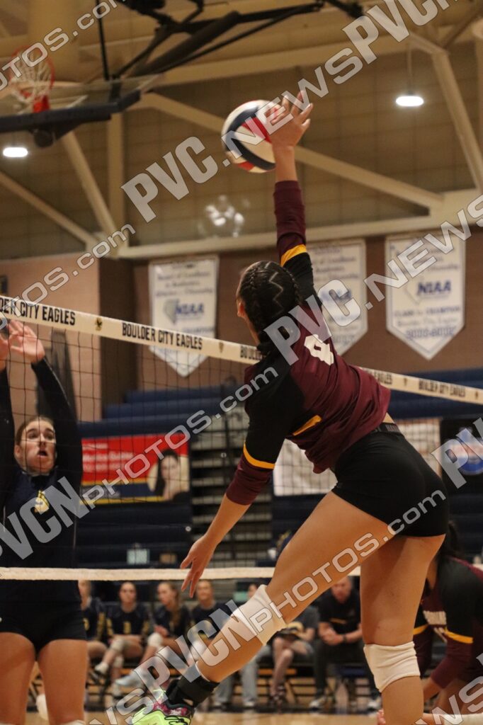 The fourth set showcased the Trojans’ determination, as Norton’s serves, Waller’s spikes, and Kamanu’s defensive block gave Pahrump an early lead. Maiava added a key ace to put the Trojans ahead midway through the set, and the score stayed tight down the stretch. With the Eagles holding a narrow lead, Ware and Saldaña connected on crucial points to keep the Trojans in contention. Ultimately, Boulder City edged out the set 25-22 to close the match.