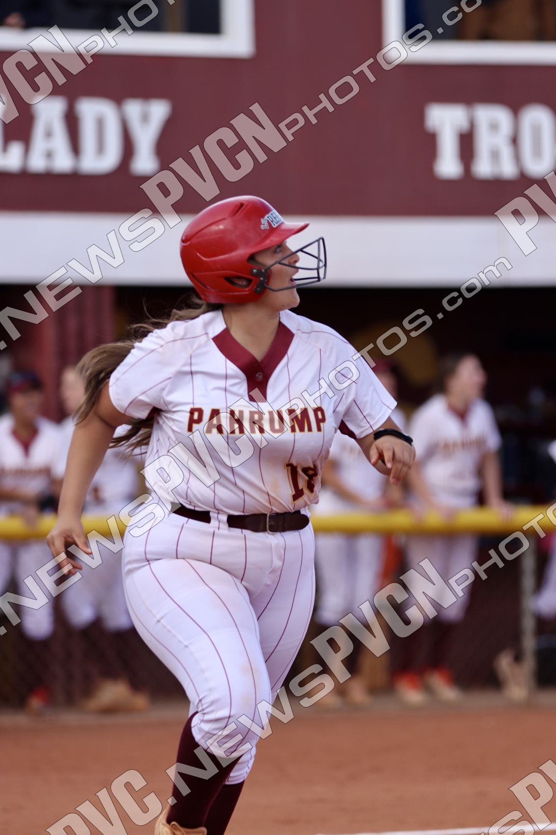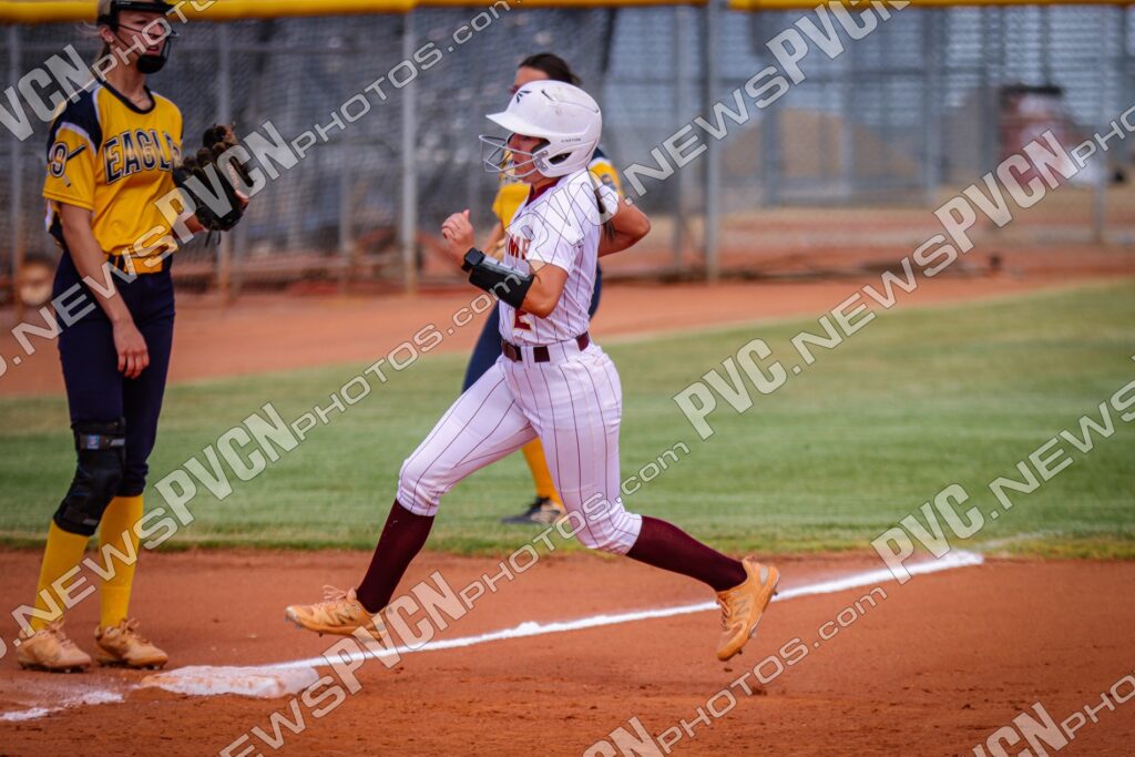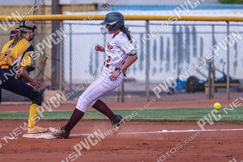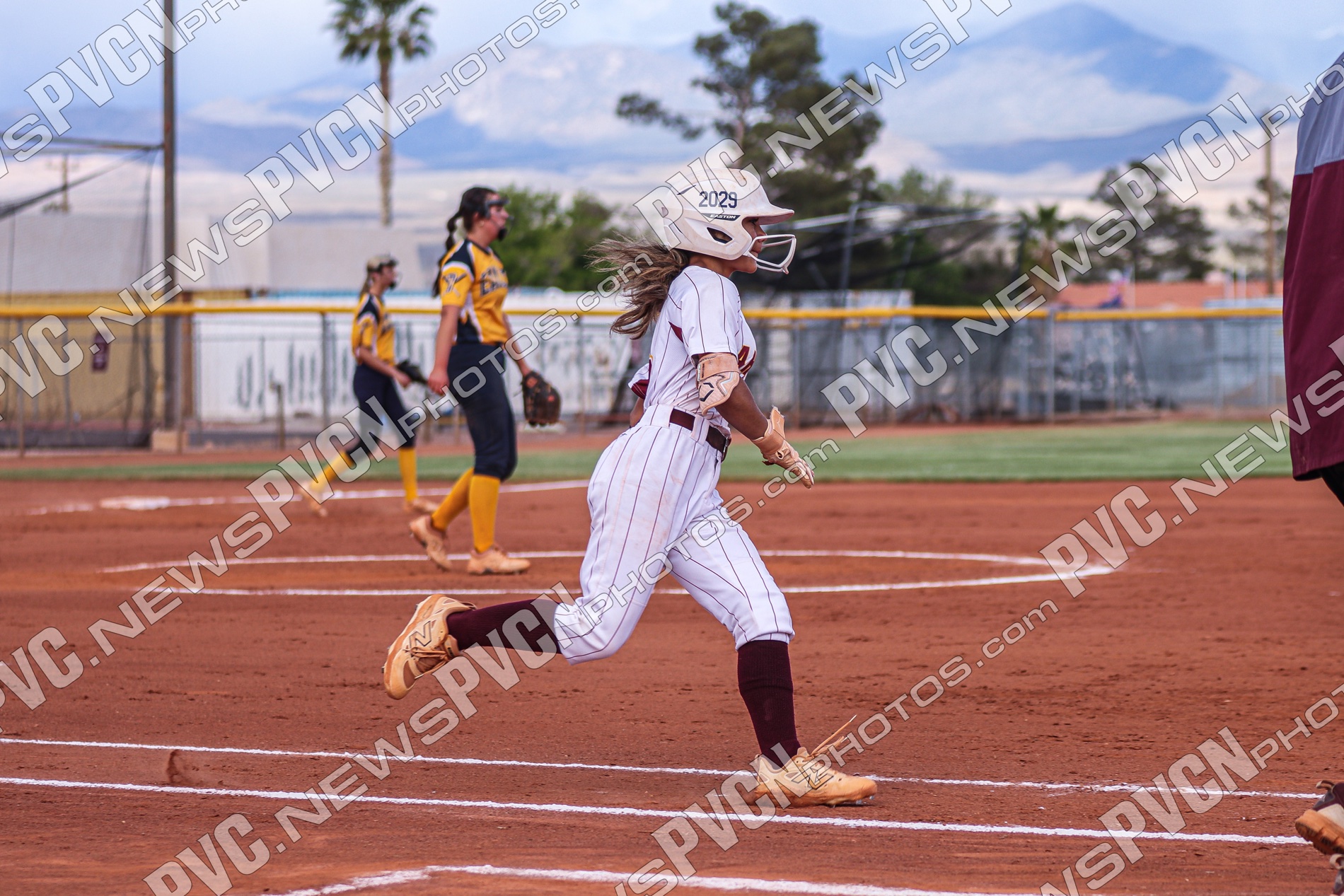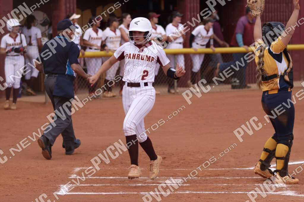 Pahrump Valley answered in the bottom half. Aspen Middaugh was hit by a pitch to lead things off, and Riley Saldaña followed with a walk. A wild pitch moved both runners into scoring position, and after a pop out, Mariah Gray drove a ground ball into right field, bringing both runners home for a 2-0 lead.