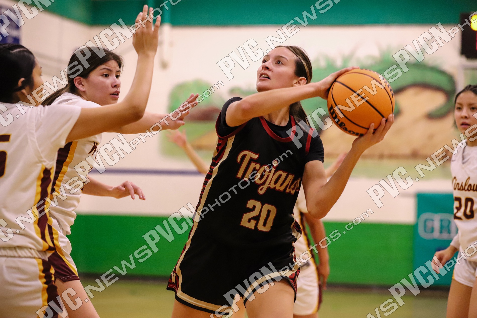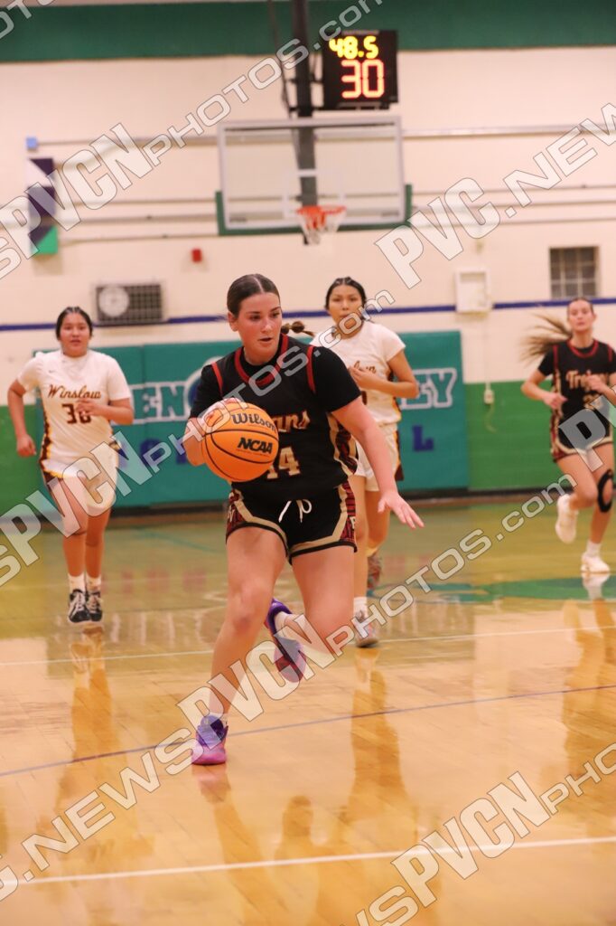 Winslow struck first, scoring quickly and applying pressure early, but the Lady Trojans responded with energy on the defensive end. Riley Saldaña set the tone by forcing multiple jump balls and converting a layup in transition to get the Lady Trojans on the board. Despite Winslow’s half-court press creating challenges, Pahrump Valley stayed aggressive. Autumn Colon came up with a key steal and finish to give the Lady Trojans their first lead of the game, while the defense continued to contest shots and force turnovers.