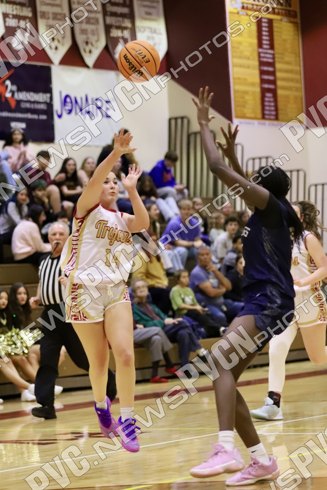 The Pahrump Valley High School girls’ basketball team put together a strong all-around performance at home on Wednesday, January 14, earning a convincing 56–32 victory over The Meadows Mustangs. Mixing timely pressure with efficient offense, the Lady Trojans built control early and steadily widened the gap as the game went on.