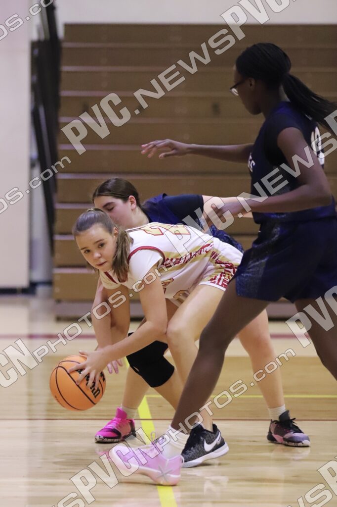 The second quarter showcased Pahrump Valley’s depth and perimeter shooting. The Lady Trojans applied face-guarding pressure, creating turnovers that turned into points. Brown knocked down two more three-pointers from the left wing, while Saldaña continued to score in transition and at the line. Defensive pressure from Crotty and Odegard led to multiple steals, and efficient ball movement allowed the Trojans to push the lead to 32–15 by halftime.
