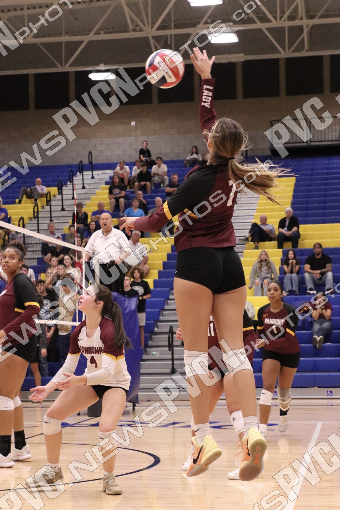 The second set showcased the Trojans’ best rhythm of the night, as they came out attacking with confidence. Marayah Waller opened with a series of powerful spikes, quickly helping Pahrump to a 4-0 lead. Heavenly Ware added an ace and several key digs, while Xe’ane Kamanu and Miani Freitas-Faamai contributed decisive kills that kept momentum on Pahrump’s side. The set tightened midway through, with both teams trading points in fast-paced rallies. The Trojans held firm through several ties before closing out the set 25-23 to even the match at one apiece.
