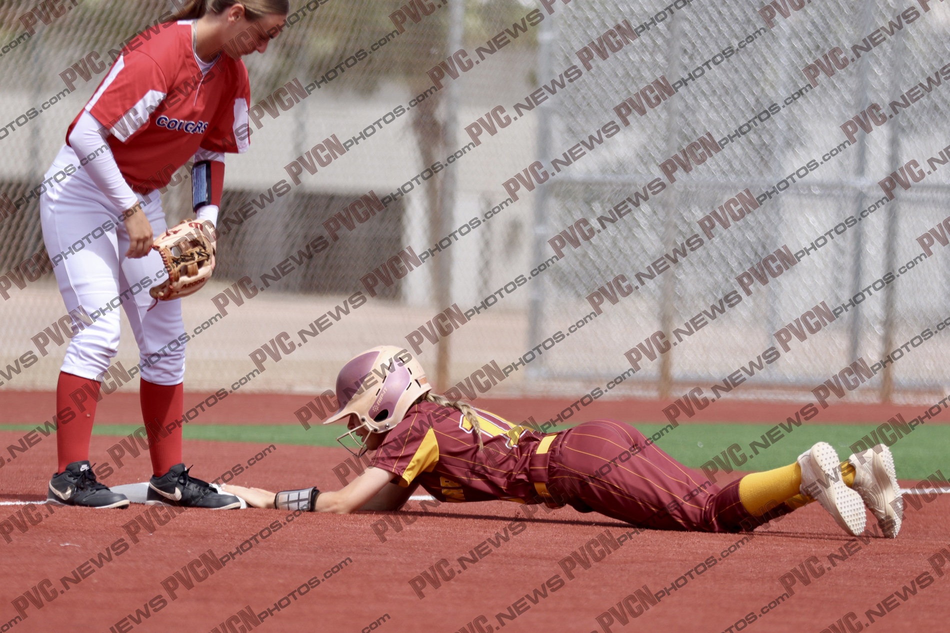 The Pahrump Valley High School softball team saw its 12-game win streak come to an end Saturday, April 25, but not without a determined fight, as the Trojans pushed until the final inning in a narrow 3-2 loss on the road against Coronado—marking their first loss in over a month.