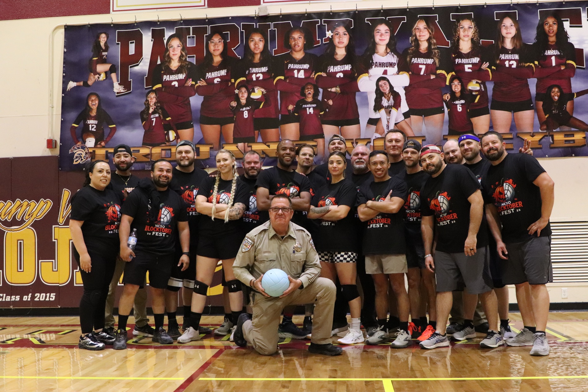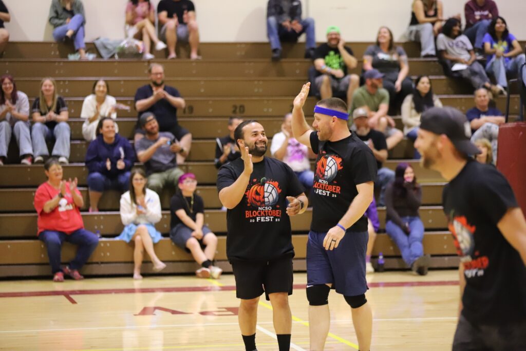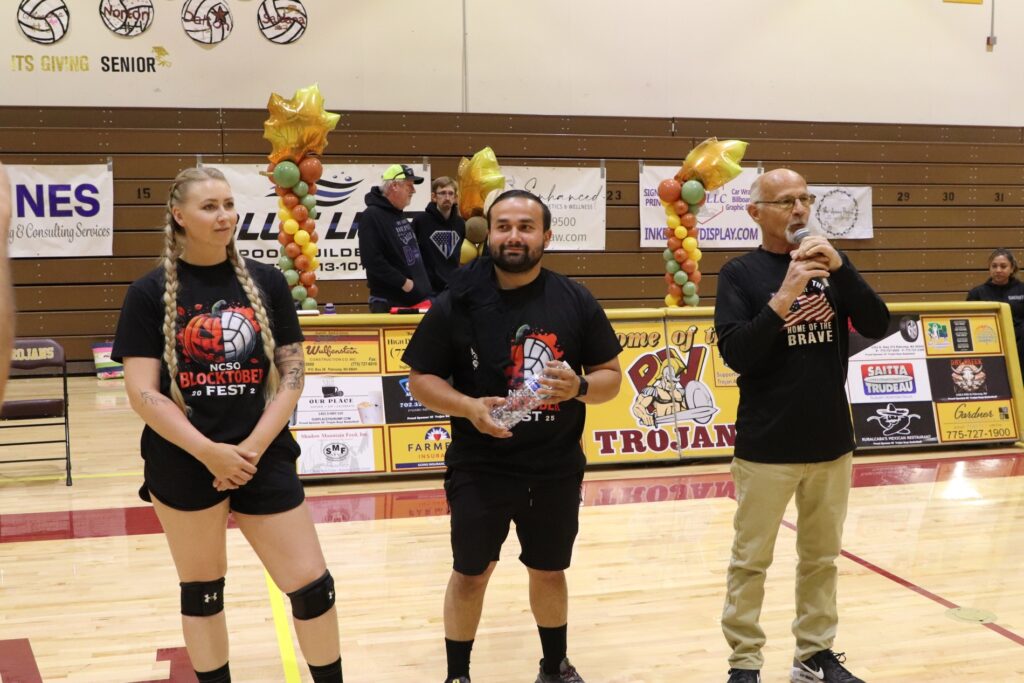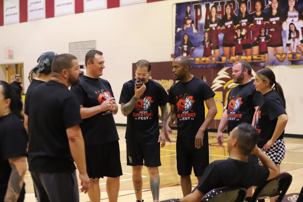 The Pahrump Valley High School gym was filled with laughter, cheers, and community spirit on Sunday, October 19, as the Nye County Sheriff’s Office hosted its first annual Blocktober Fest, a charity volleyball event organized by Sergeant Josette DuBois and Deputy Andi Bishop. The light-hearted competition brought together local law enforcement officers for a good cause, raising $900 to benefit PVHS Athletics and the Avery Project—a local nonprofit that donates new bicycles to children each Christmas.