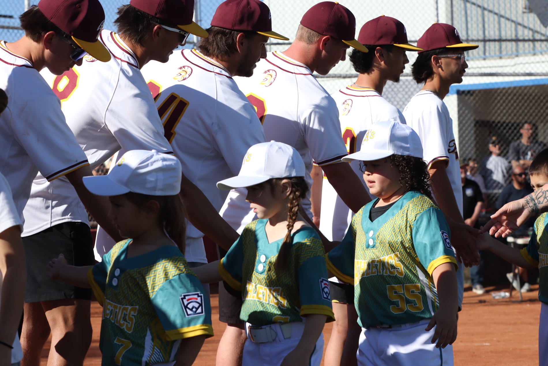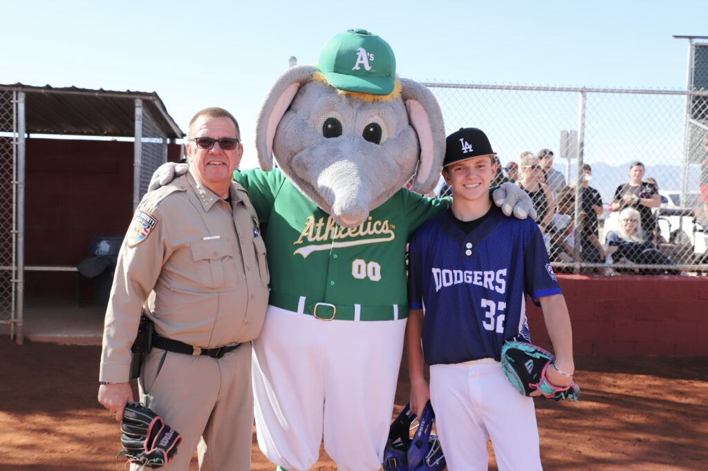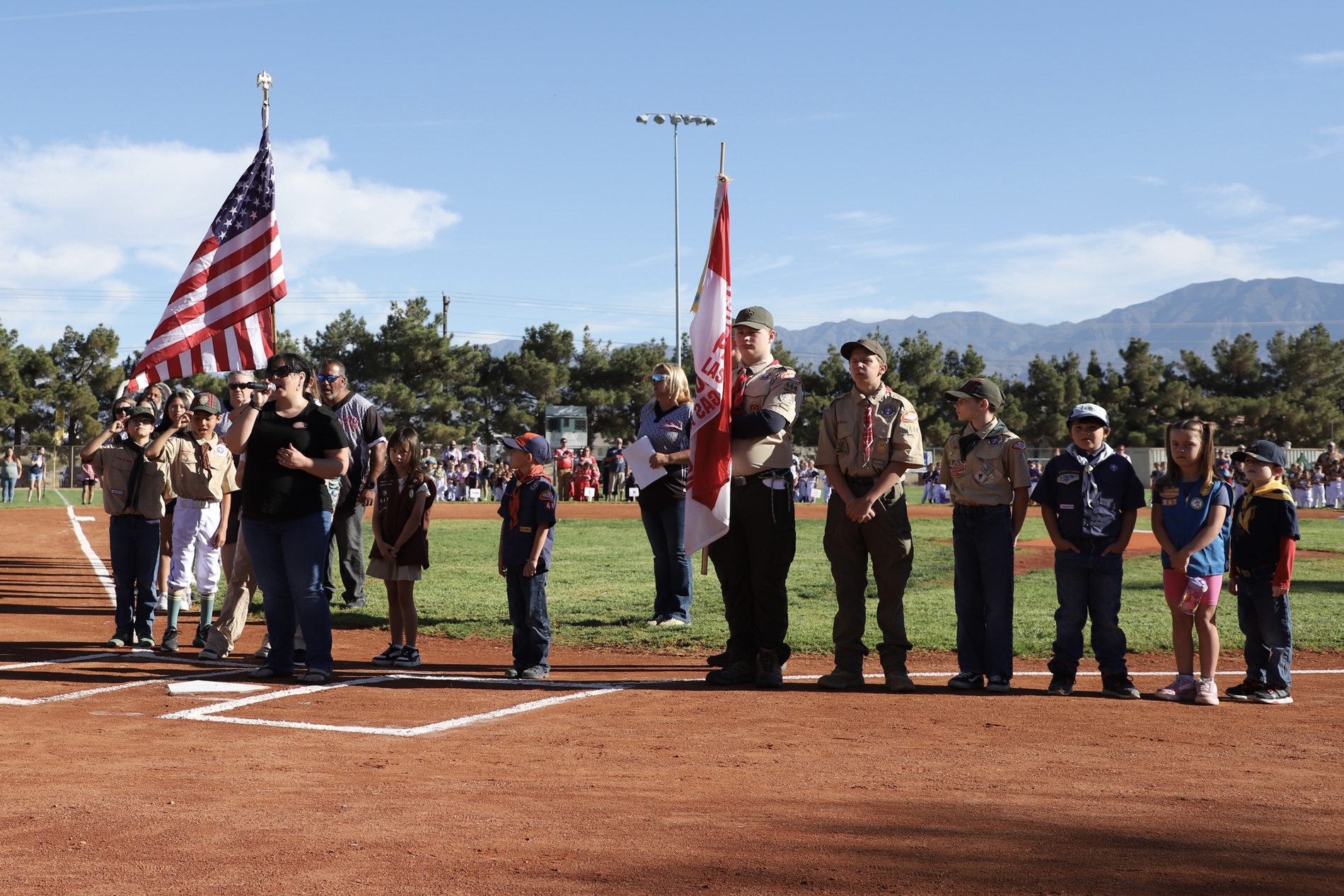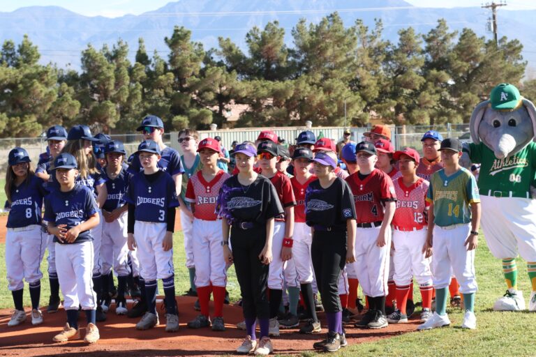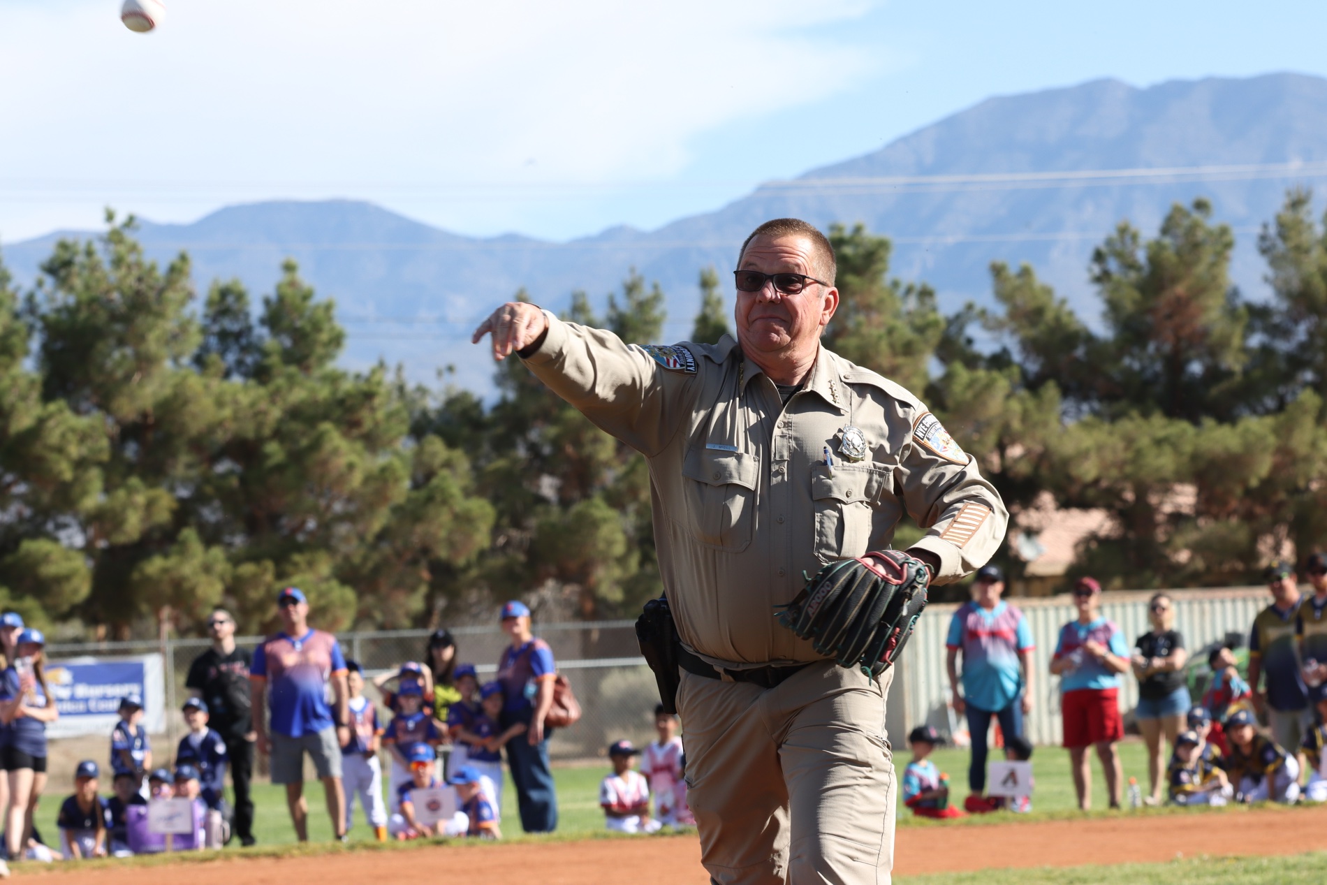 Each team was welcomed during the ceremony by members of the Pahrump Valley Little League Board, the Pahrump Valley High School baseball team and a special guest appearance from Stomper, the mascot of the Athletics, adding an extra layer of excitement for the players. The ceremony also featured a stirring performance of the National Anthem by Sharon Sadler, followed by Nye County Sheriff Joe McGill throwing out the ceremonial first pitch to officially open the season. Game play followed the ceremony for the rest of the day across all divisions.