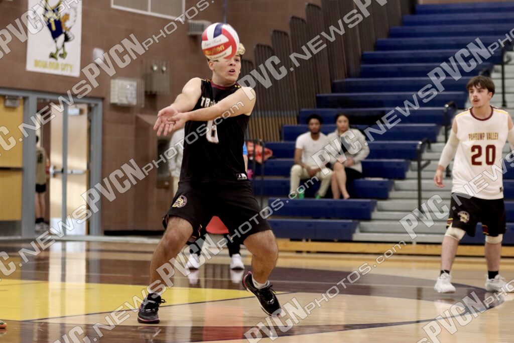 The second set saw Pahrump continue to battle, with moments of solid execution at the net. James Wilson contributed with a strong block attempt, while the Trojans found success capitalizing on service errors from the Eagles. A clean kill midway through the set highlighted the team’s offensive potential, and Sanchez added another ace with a serve to the back corner.