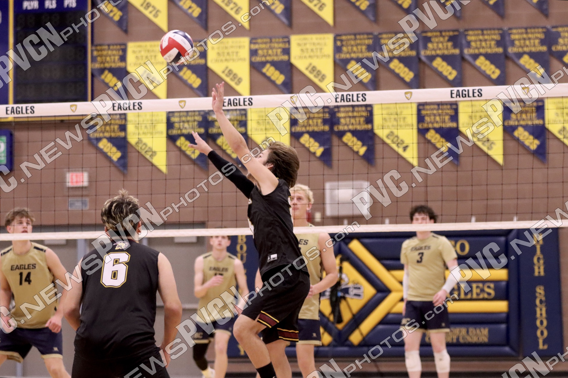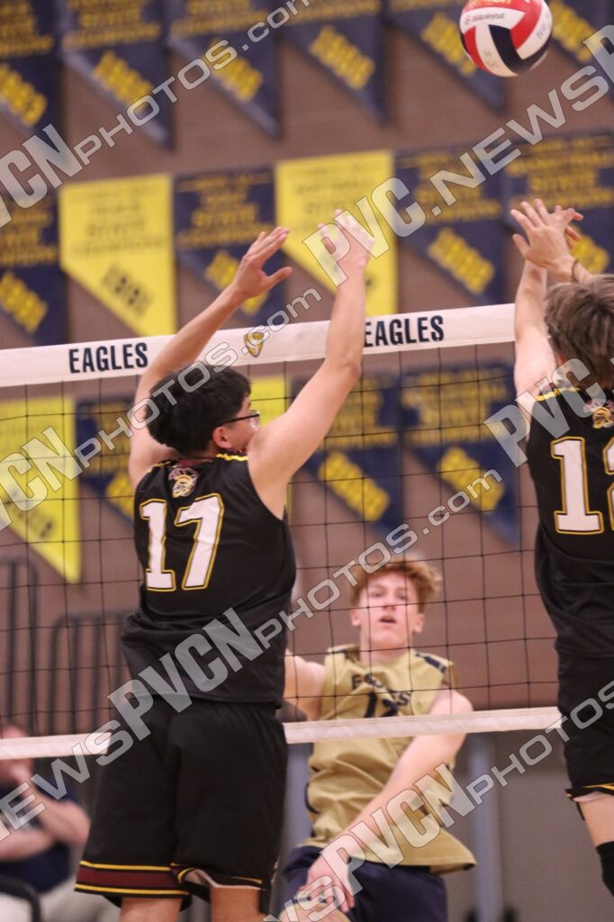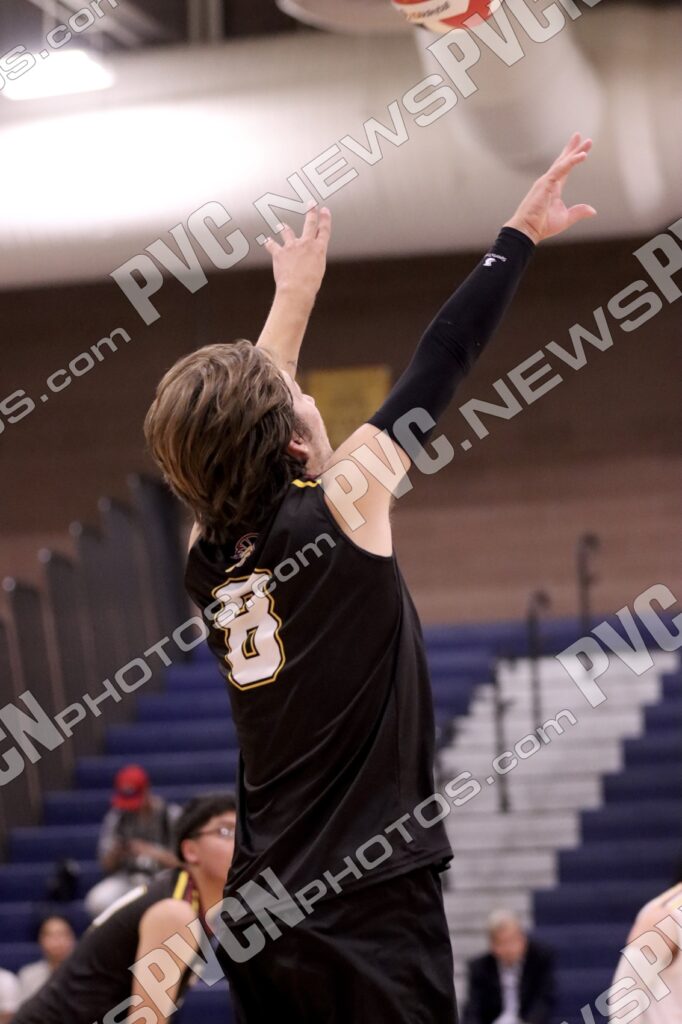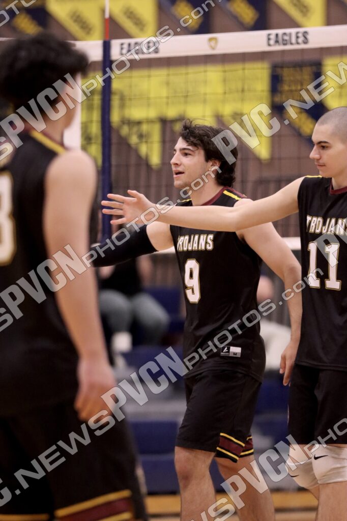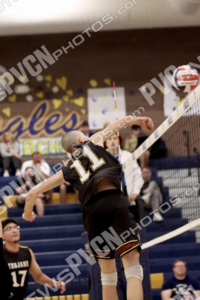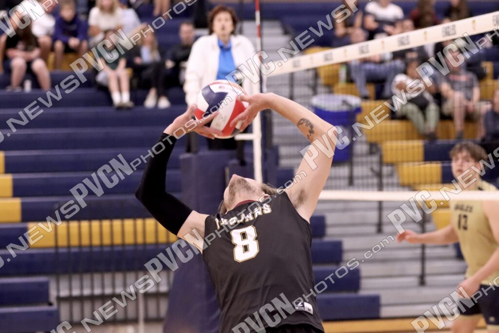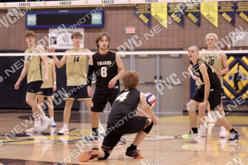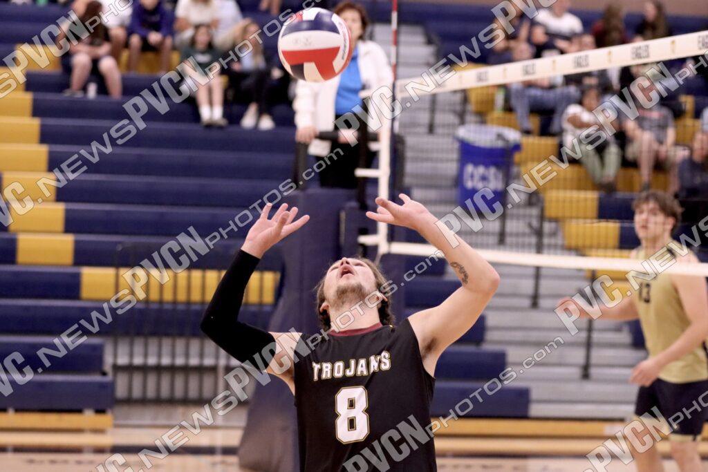 From the opening serve, the Trojans worked to find their rhythm. Early in the first set, Andy Sanchez helped spark the offense with a well-placed tip to even the score, while Elijah Thompson added pressure at the net with an aggressive spike. The Trojans stayed within reach through the early points, capitalizing on Eagle errors and pushing the score back to even multiple times.