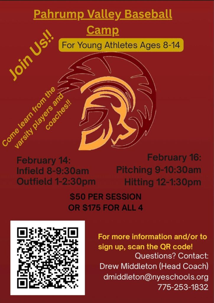 The Pahrump Valley High School Trojans baseball team will host a youth baseball camp in February as a fundraiser for the program, offering local players the chance to develop skills while learning from high school athletes and coaches.