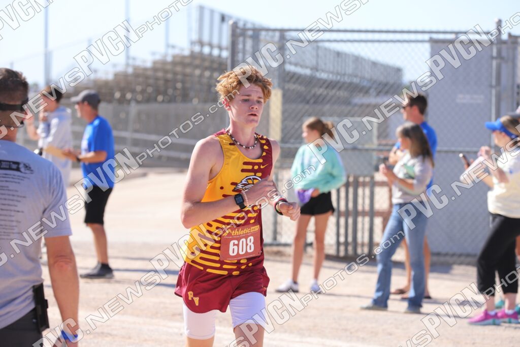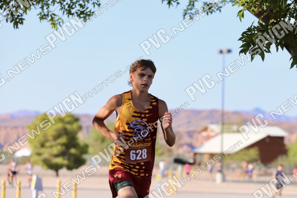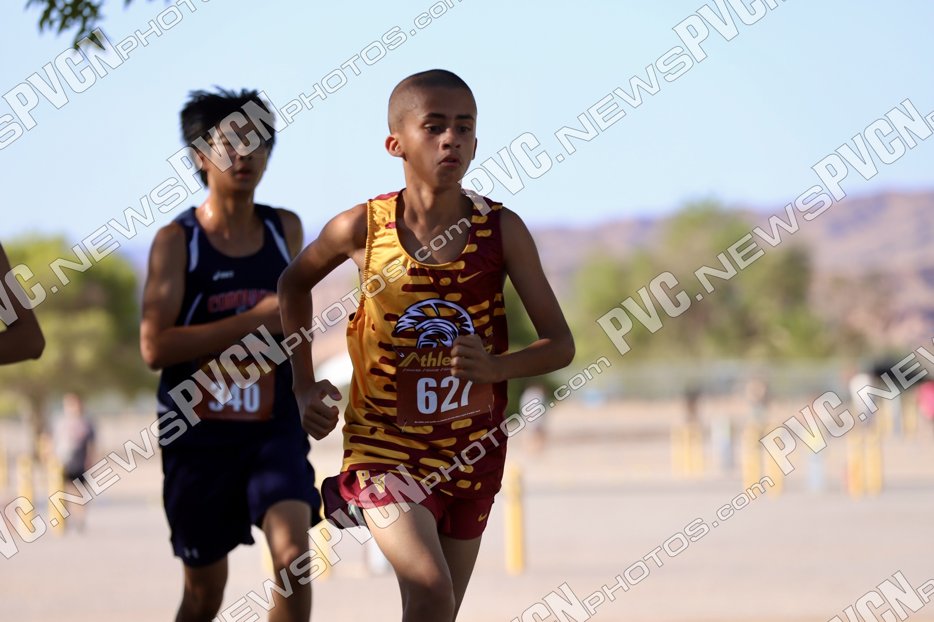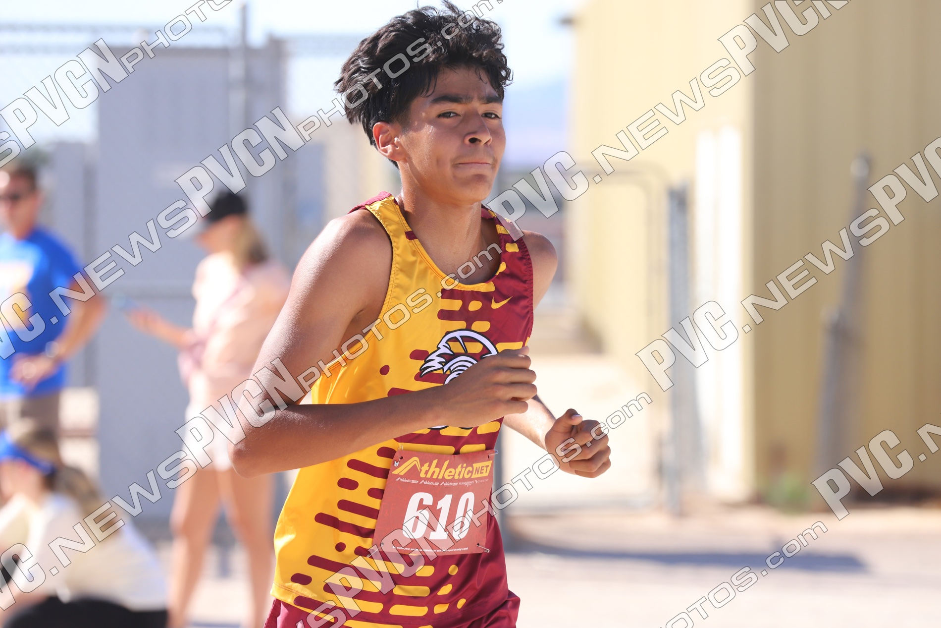 In the boys’ Varsity race, the Trojans secured the team championship with a deep and balanced performance across the board. Joaquin Flores finished first for Pahrump and secured fourth place overall with a time of 17:49.3, while teammate Josh Gent was just behind him in fifth place at 17:57.7. Logan Tilley added another top-10 finish at eighth overall in 18:40.4, and Aydon Veloz crossed the line in eleventh at 18:48.9. Consistency was key for the Trojans, as Ben De Santiago (13th, 19:06.4), Josh Flores (14th, 19:08.0), and Timmy Stutzman (15th, 19:09.1) all finished within seconds of one another, each earning a medal for their top-15 placement. Daniel Thompson (23rd, 20:27.6), Kris Trejo (27th, 20:54.2), Jacob McLaughlin (28th, 20:55.1, SR), Sam Grabbe (22:39.6), and Akim Khan (23:19.4) rounded out an impressive team showing that demonstrated both depth and balance.