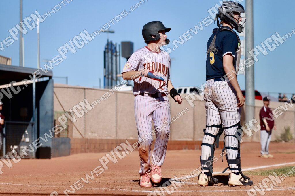 After a tough outing earlier in the week, the Pahrump Valley High School baseball team returned to the field Wednesday, April 15, determined to respond—and did just that. Behind a complete game performance from Sammy Mendoza and a balanced offensive attack, the Trojans earned a 7-1 win on the road over Boulder City to split the series.
