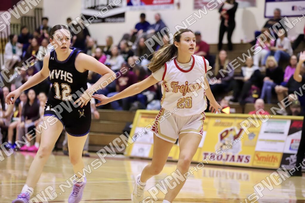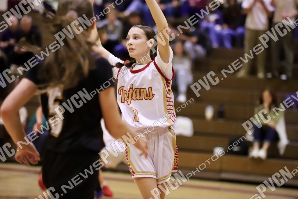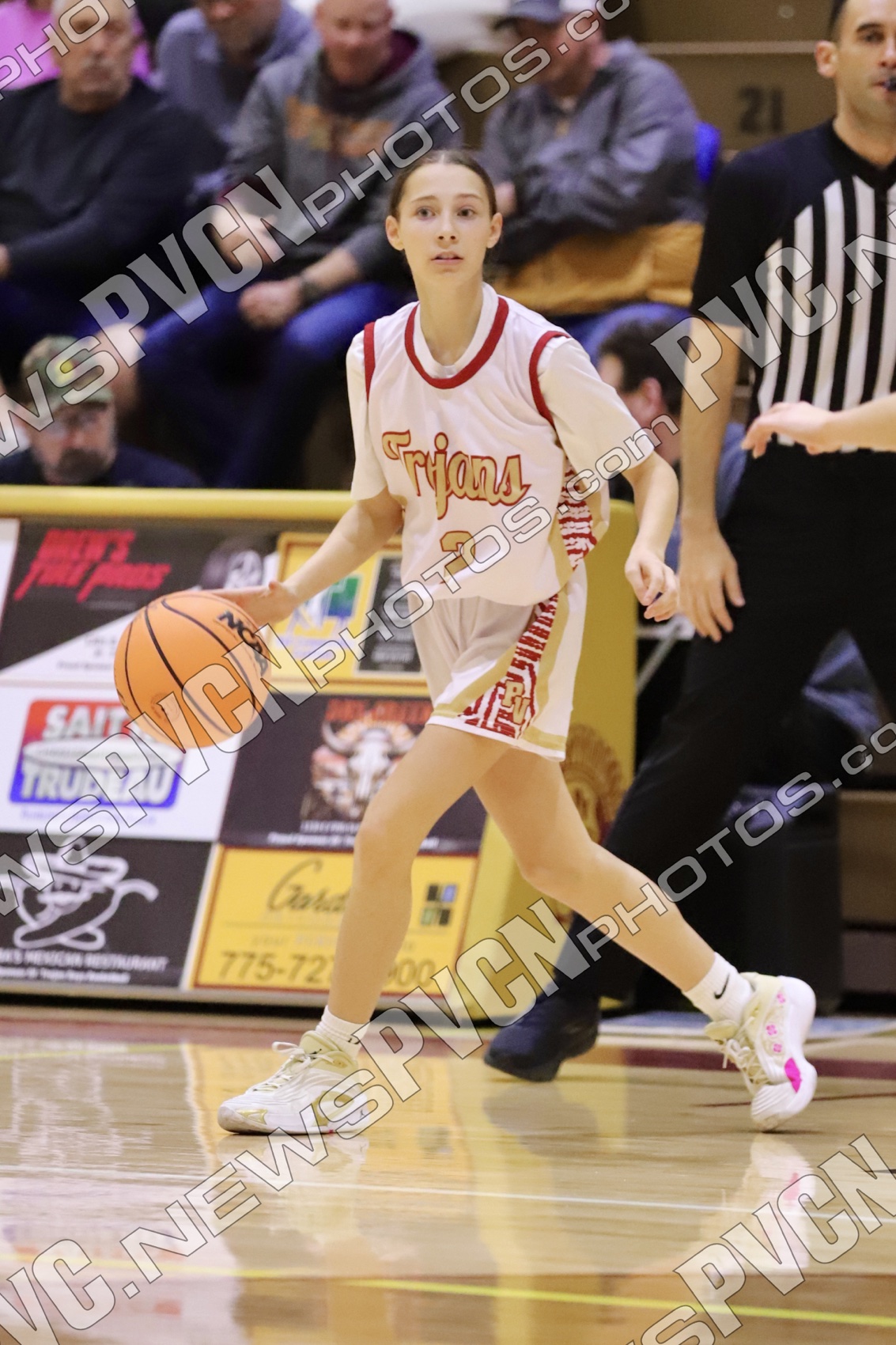 Moapa won the opening tip and struck first with an early basket, followed by a three-pointer that gave the Pirates an early edge. Pahrump Valley responded with defensive intensity, as Kaitlyn Brown came up with a steal to slow Moapa’s momentum. Brown soon connected from the top of the key for a three-pointer, helping the Trojans settle into the game as they worked through Moapa’s physical defense.