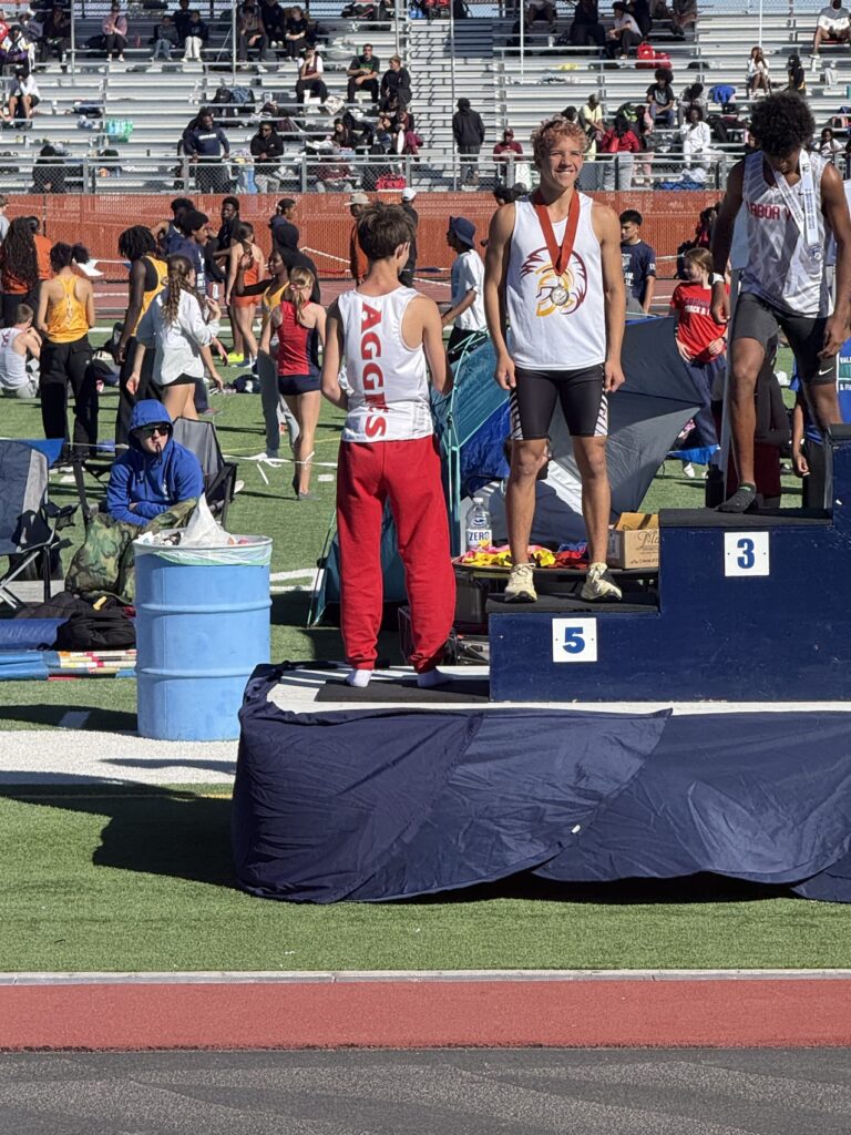 In the high jump, Aydon Veloz cleared 5 feet, 6 inches to lead the boys, while Josh Gent and Kris Trejo each cleared 5 feet. For the girls, Rosie Miller cleared 4 feet, 8 inches, with Kimberly Trejo and Aurora Bowers both clearing 4 feet, 6 inches.
