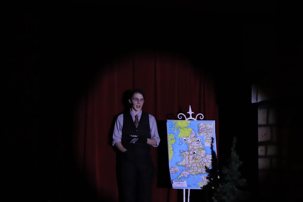 The show opened with Ethan O’Rourke as the Historian, setting the tone for the evening while later showcasing versatility by also portraying the Knight of Ni and Tim. His ability to shift between characters highlighted the comedic depth and fast-paced nature of the production.