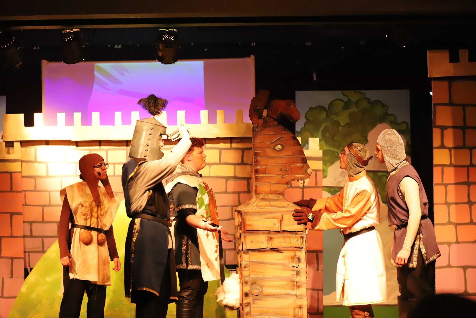 Several other performers brought the colorful cast of characters to life, including Chase Moore as Sir Robin, Luigi DeAngelis as Sir Lancelot, Emery Miller-Rocha as Sir Galahad, and Adam Ward as Sir Bedevere. Each actor delivered strong character portrayals, balancing comedic timing with engaging stage presence.