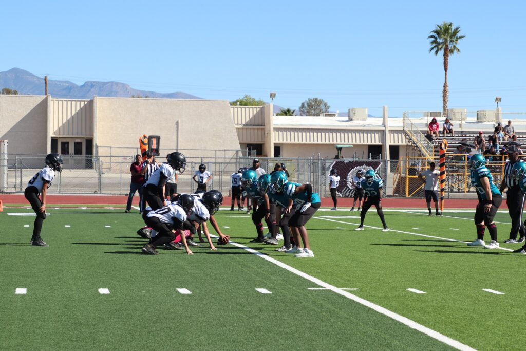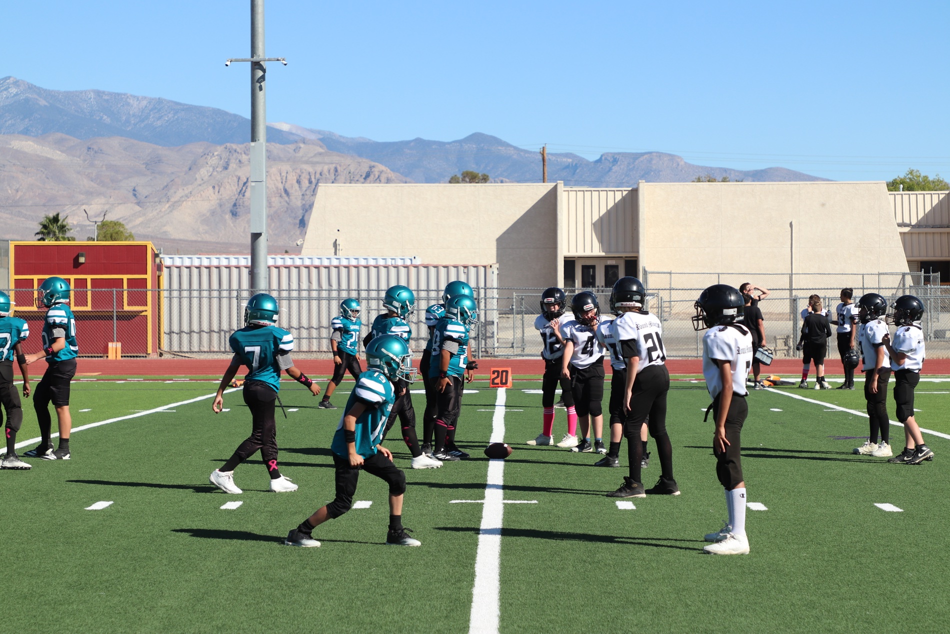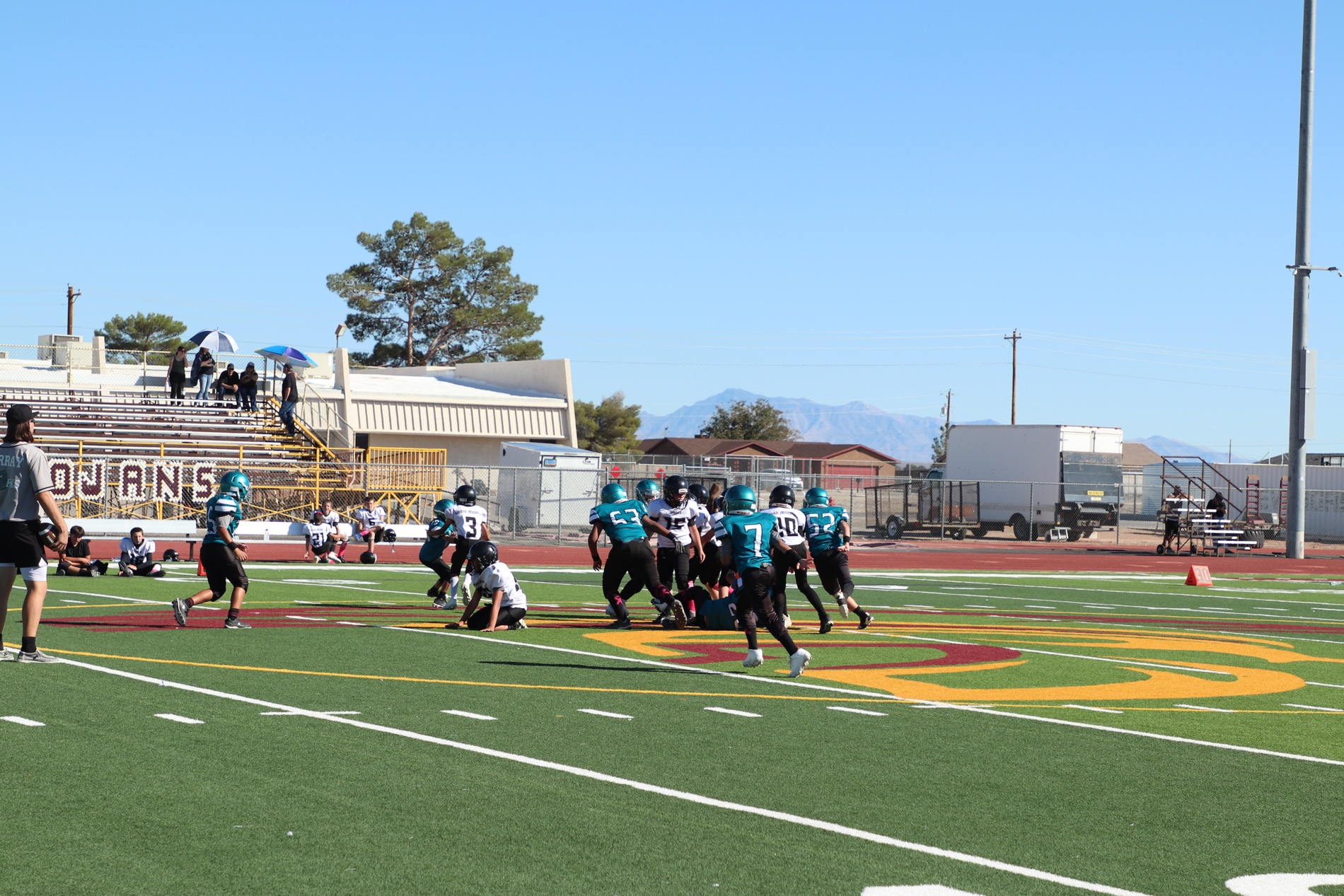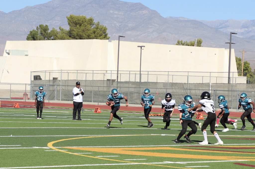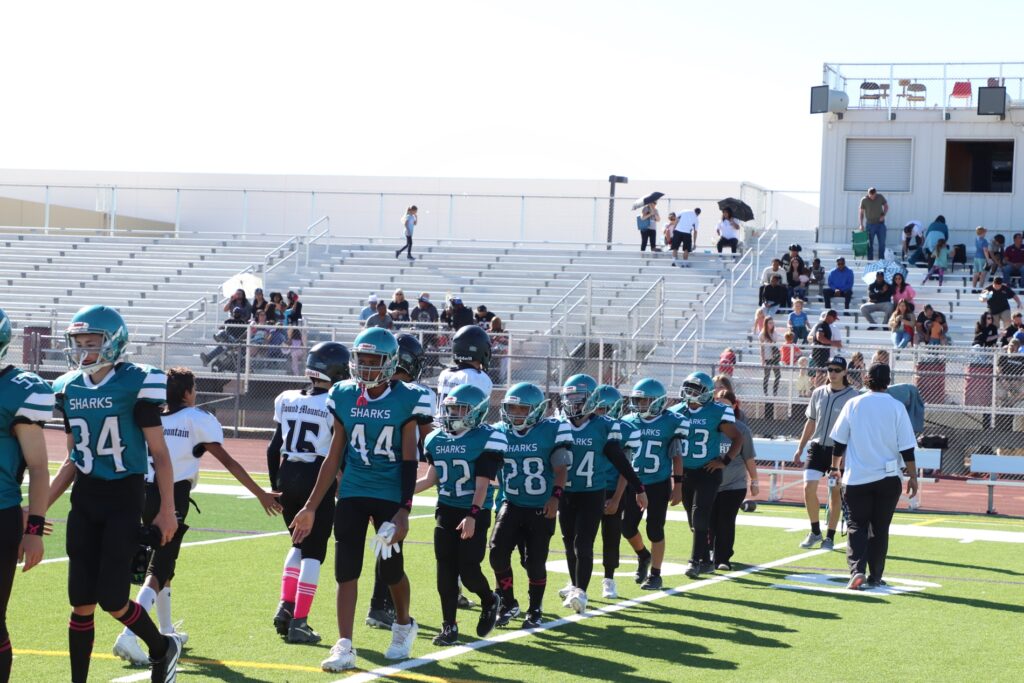 The Rosemary Clarke Middle School Sharks football team wrapped up their regular season in commanding fashion on Saturday, October 19, shutting out Round Mountain 43–0 at home in Pahrump. The victory cemented the Sharks’ undefeated record in league play and secured them the top seed heading into this Saturday’s championship game.