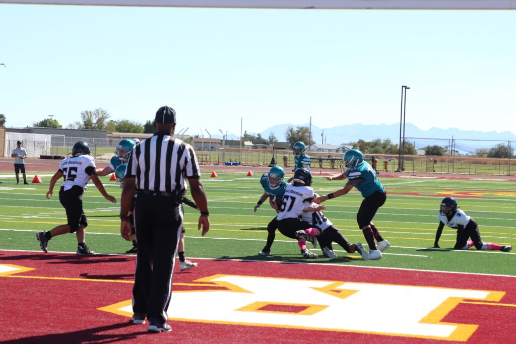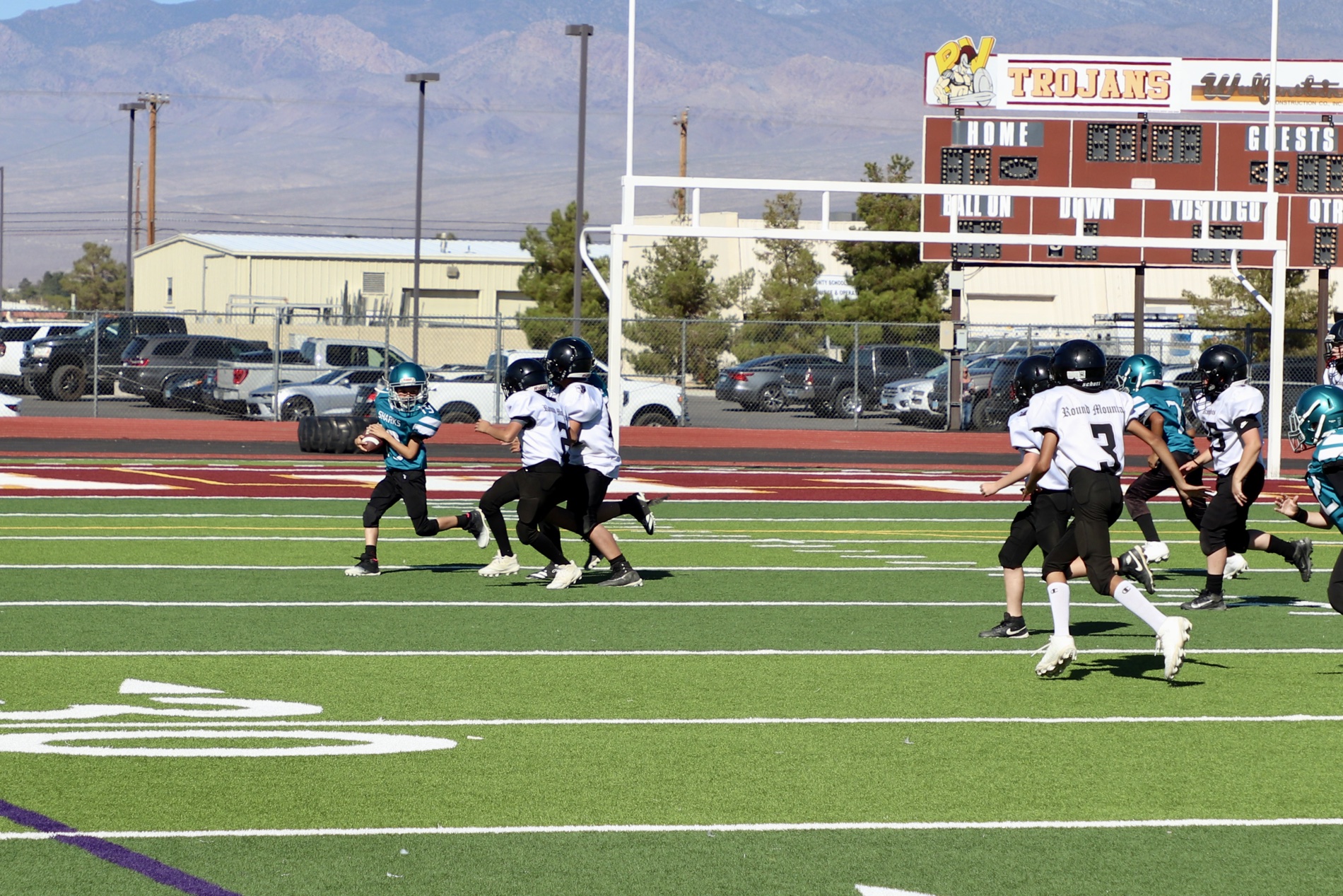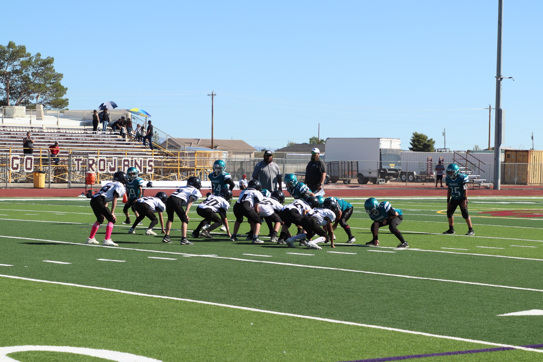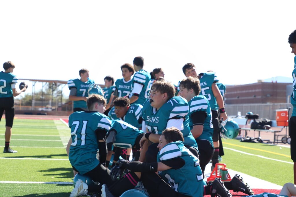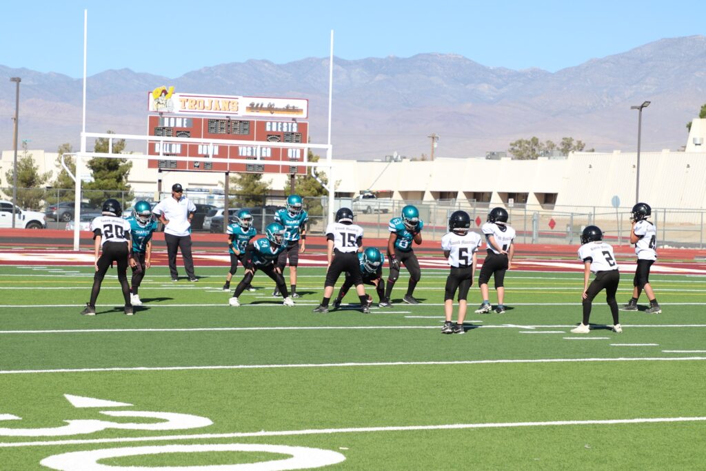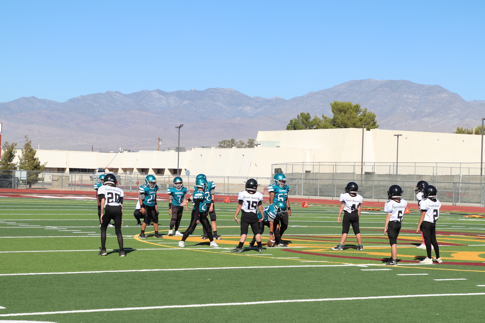 The Rosemary Clarke Middle School Sharks football team wrapped up their regular season in commanding fashion on Saturday, October 19, shutting out Round Mountain 43–0 at home in Pahrump. The victory cemented the Sharks’ undefeated record in league play and secured them the top seed heading into this Saturday’s championship game.