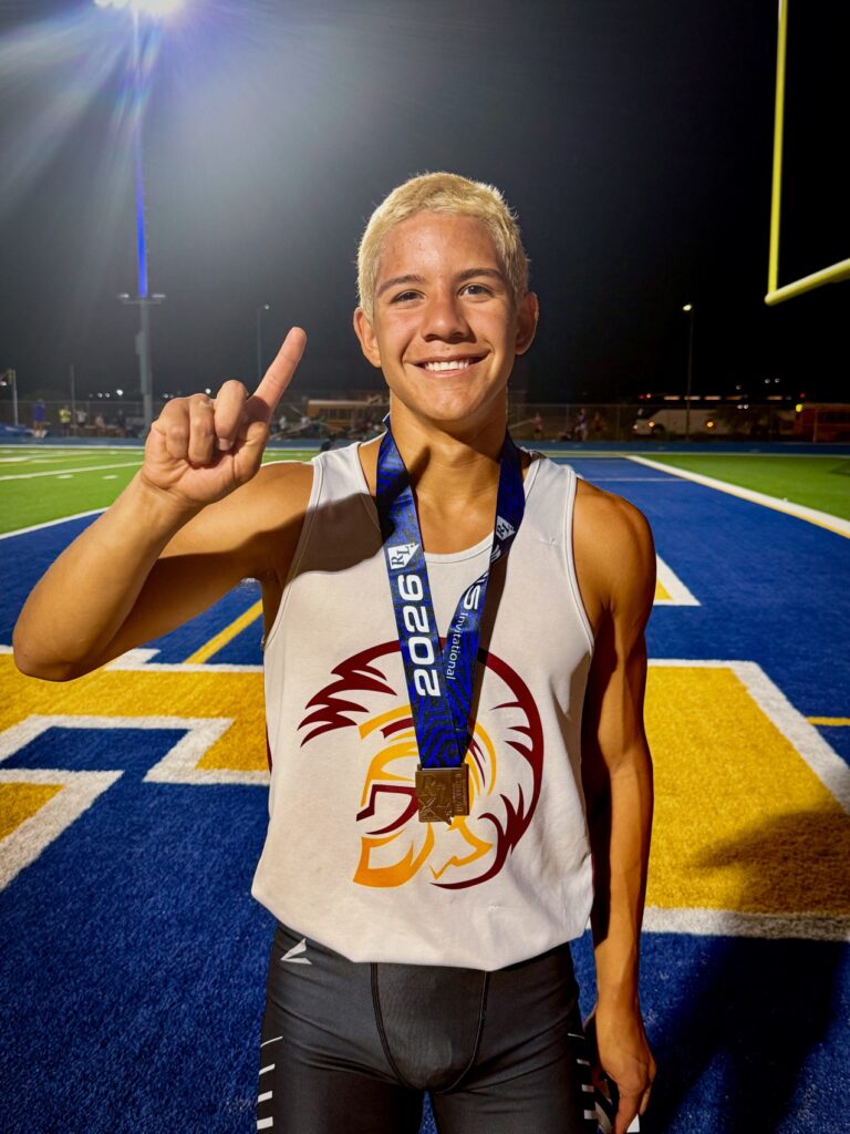 One of the most electric moments of the meet came in the boys 400-meter dash, where Ben De Santiago continued his remarkable season. After first setting the school record earlier this year, De Santiago has now lowered that mark three additional times, breaking his own record for the fourth time this season. His latest performance, a winning 49.21, further cements his place among the state’s elite, ranking him third across all classifications and first in 3A.