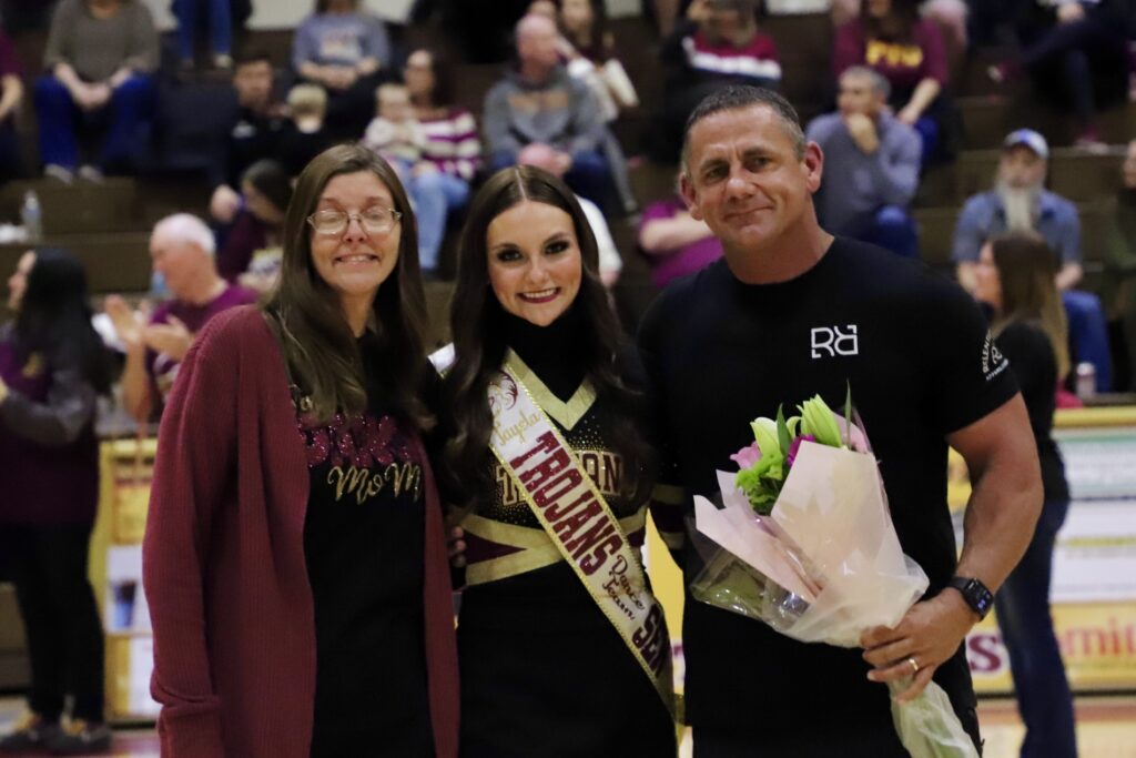 Honored from the PVHS Dance Team were seniors Tayela Brown, McKenna Cunningham, Natalie Minor and Lucy Smith, while the Lady Trojans recognized team manager Akim Khan alongside players Julie Briggs and Julianna “Jules” Ondrisko. The evening set the tone for a competitive and tightly contested game that came down to the final seconds.