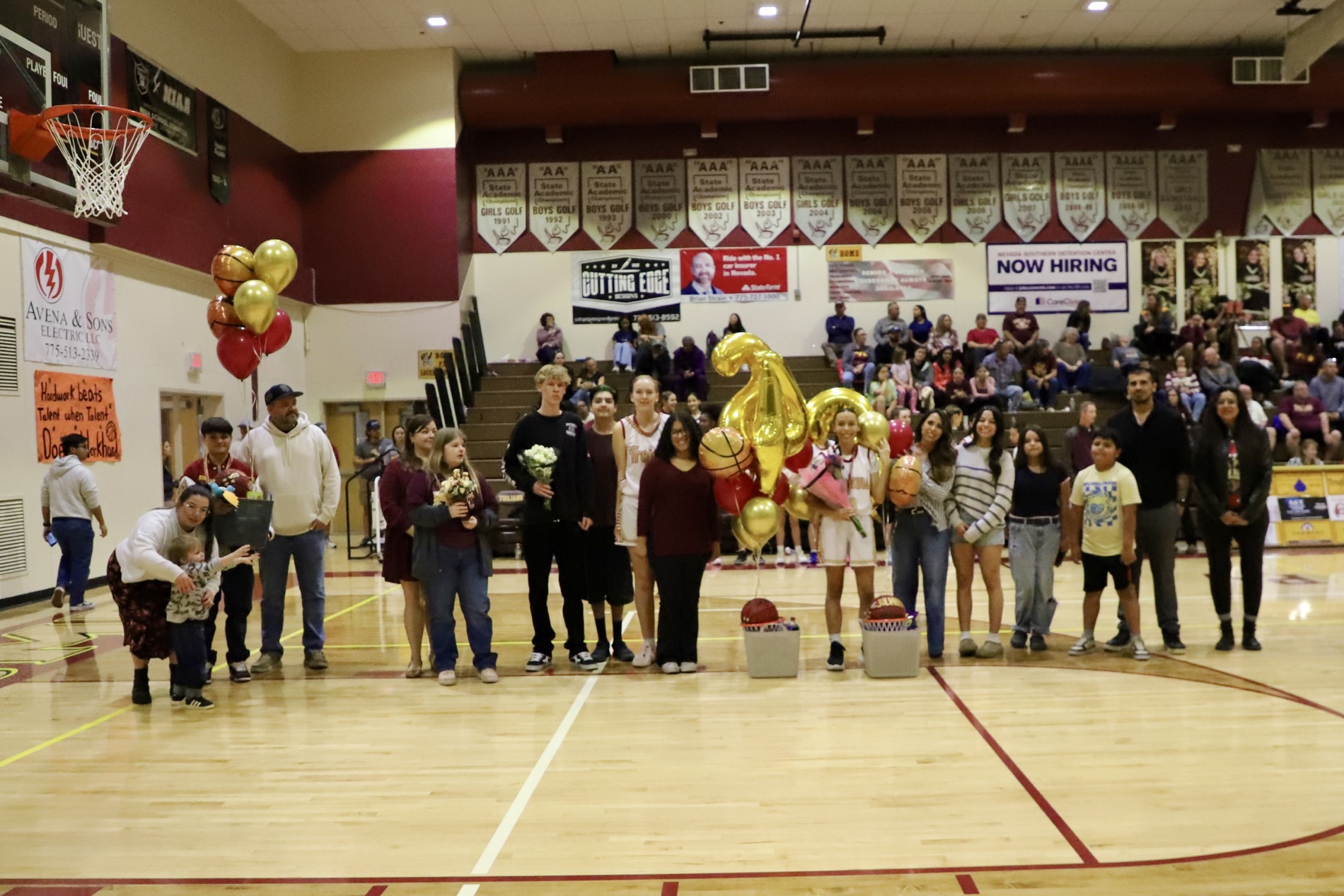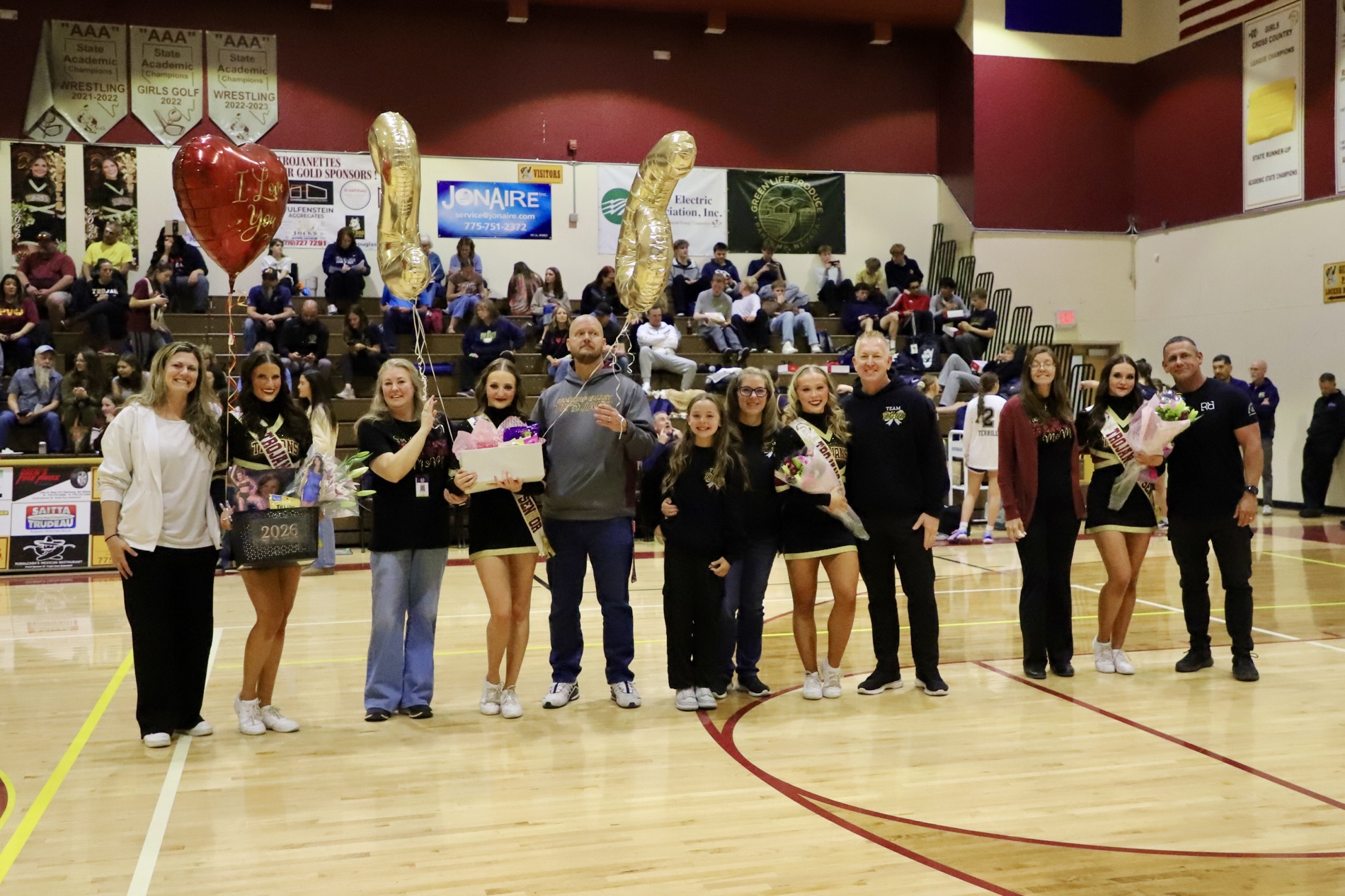The Pahrump Valley High School girls’ varsity basketball team closed out the regular season Friday, February 6, with an emotional Senior Night matchup against the Boulder City Eagles. Before tipoff, the school community gathered to recognize seniors from both the PVHS Dance Team and the Lady Trojans basketball program, celebrating their dedication and contributions before the team took the court in front of a supportive home crowd.