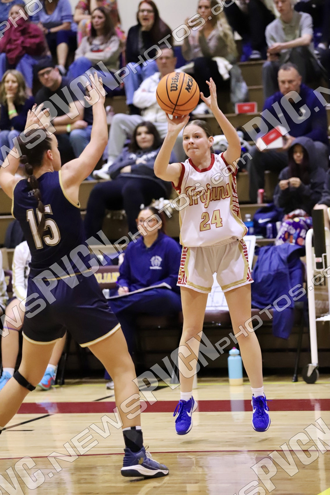 With time winding down in the half, Nelsen provided a highlight moment, sinking a deep three-pointer from the yellow line, with six seconds remaining to give PVHS a 19-17 halftime advantage.