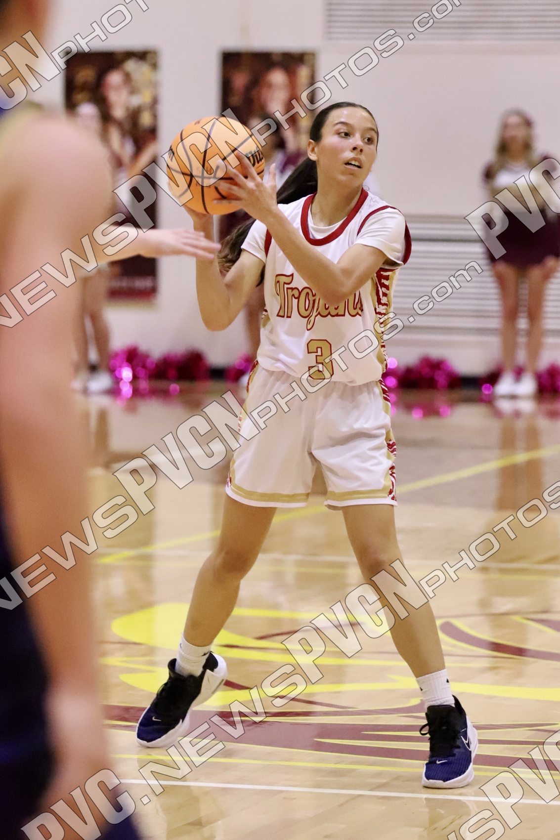 Pahrump Valley won the opening tip and struck first when Kaitlyn Brown was fouled on an underneath shot just 35 seconds into the contest, converting one of two free throws to give the Trojans a 1-0 lead. Boulder City answered at the line moments later, but Pahrump responded with strong interior play. With 3:43 remaining in the first quarter, Riley Saldaña collected an offensive rebound and finished inside for two points, helping PVHS regain the advantage.