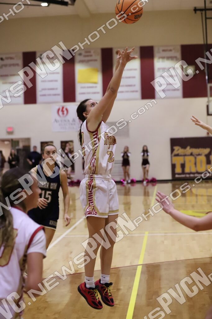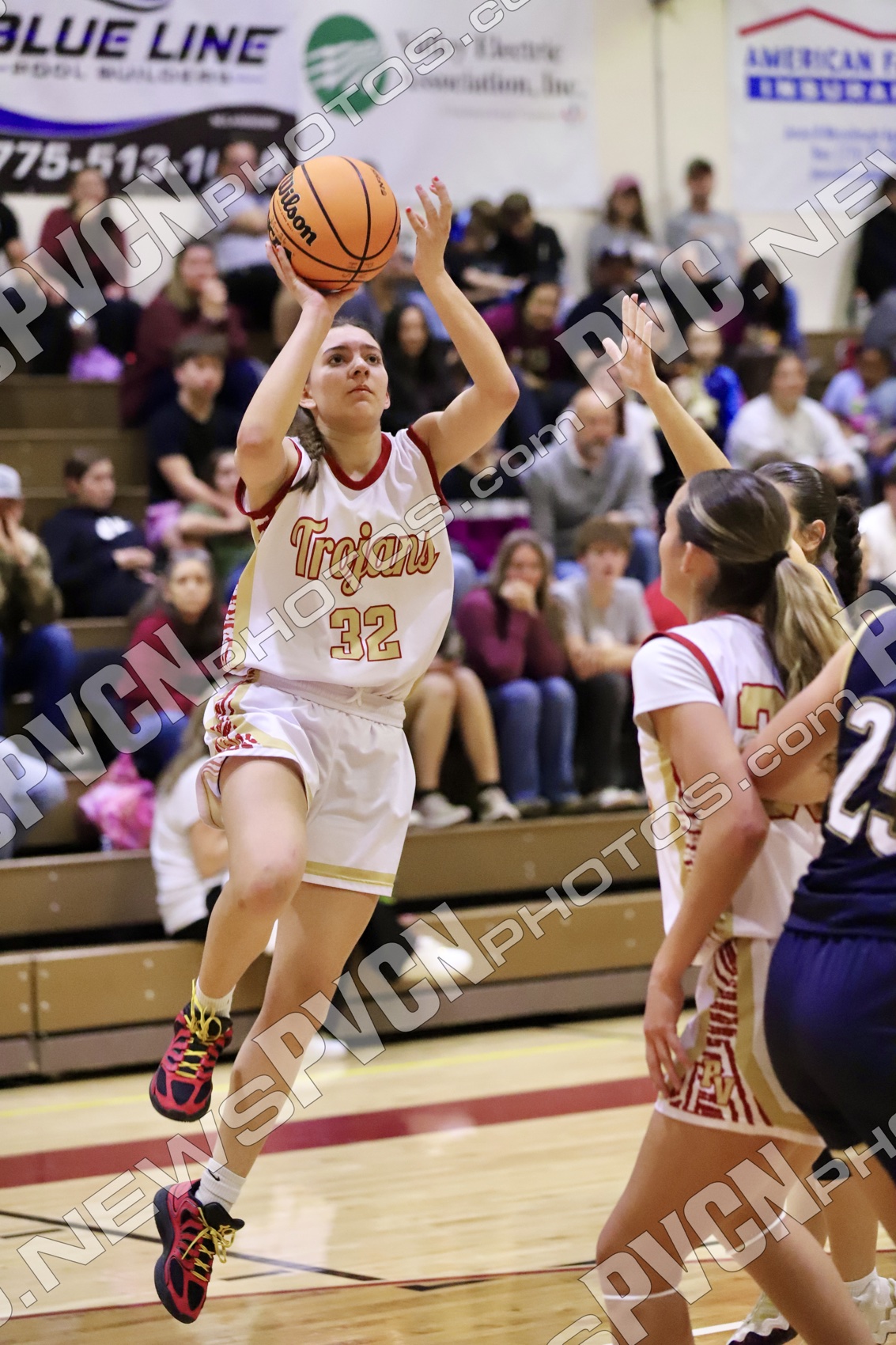 The teams traded baskets throughout the opening period. After Boulder City tied the game at 3-3, Addi Nelsen knocked down a three-pointer from the wing to spark the offense and put Pahrump ahead 6-3. Boulder City responded with a late bucket to cut the lead to one, but Olivia Veloz delivered a momentum boost in the closing seconds of the quarter. Using a pump fake from beyond the arc, Veloz drove into a moving midrange jumper that found the net with five seconds left, sending the Trojans into the second quarter with an 8-5 lead.