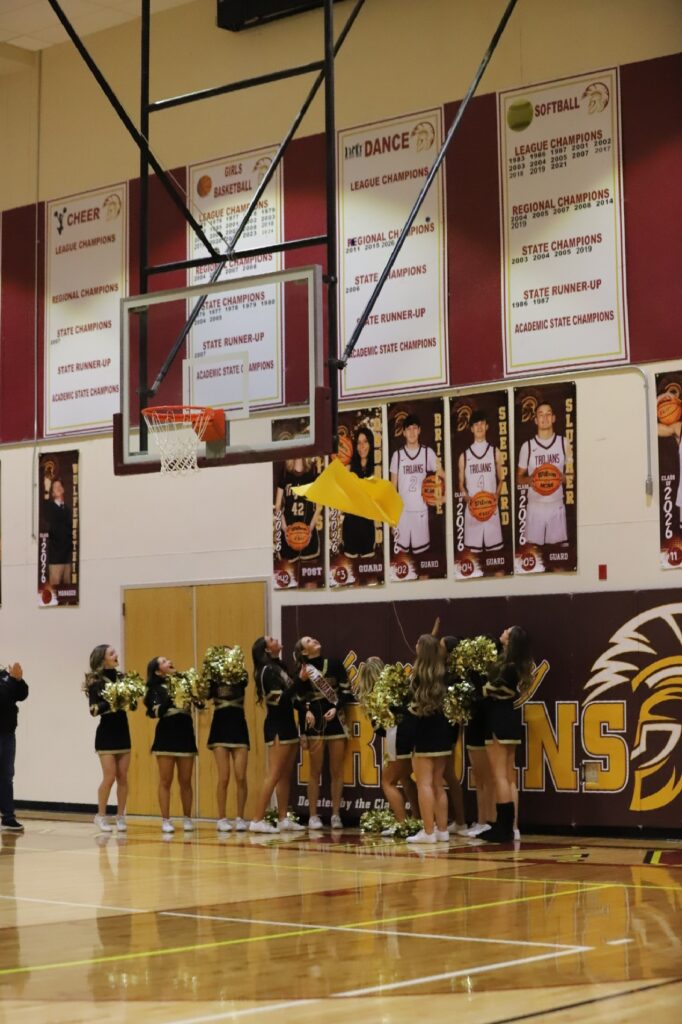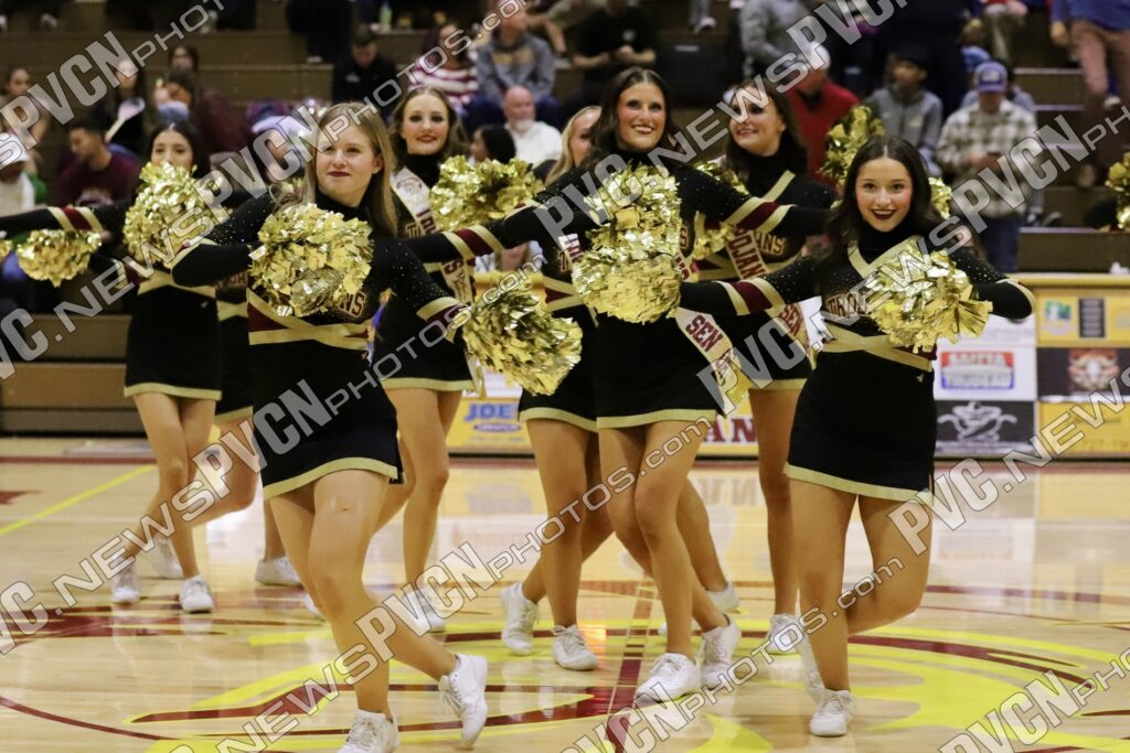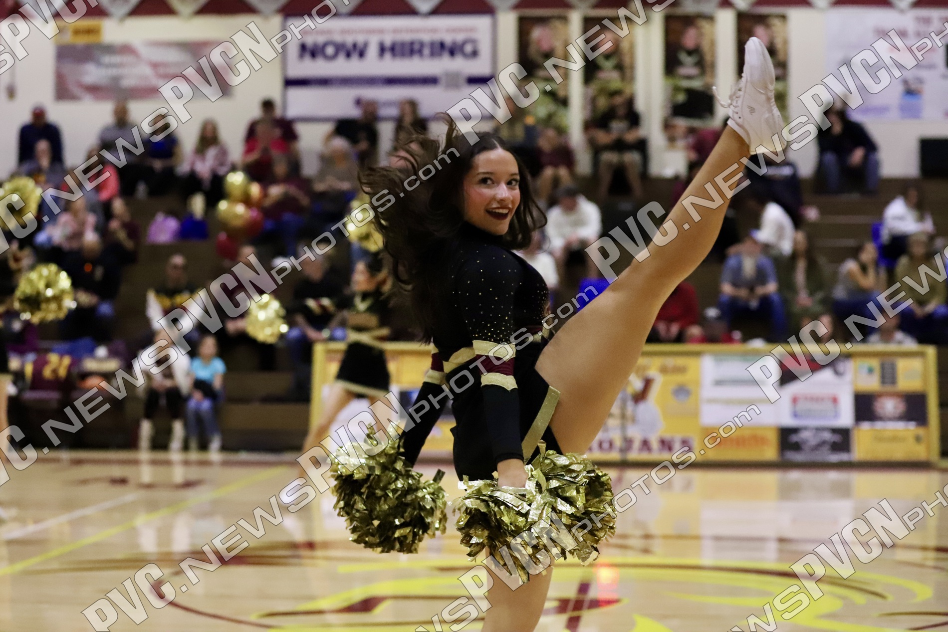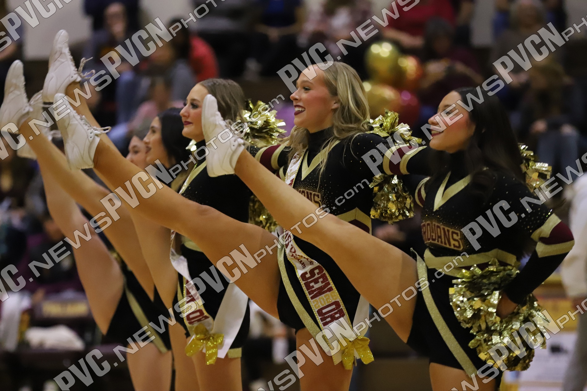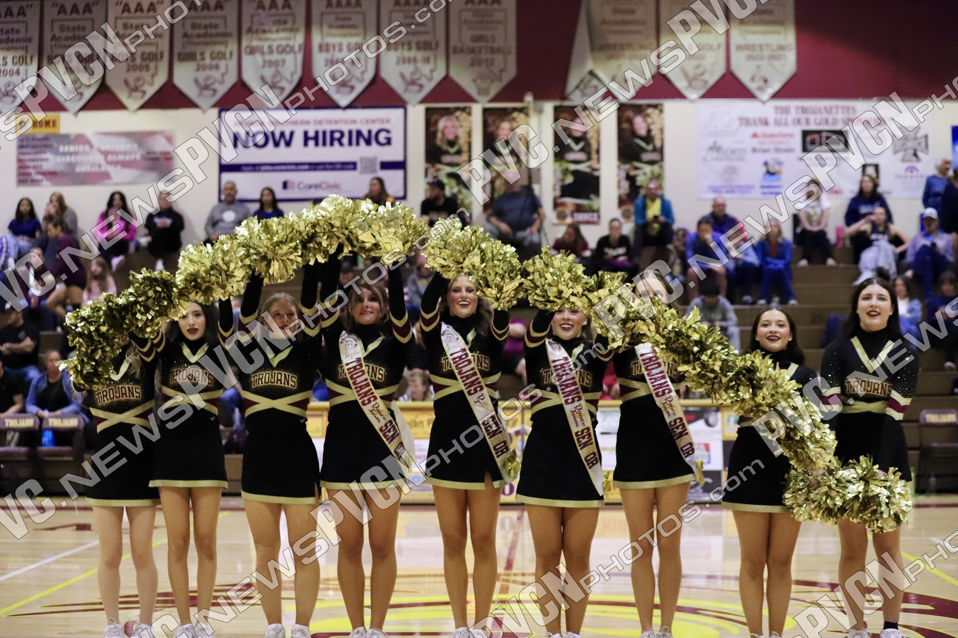 At halftime, the celebration of PVHS student achievement continued with a special banner drop ceremony honoring several Trojan programs. The PVHS Dance Team was recognized for its Regional Championship placement, highlighting the team’s successful competitive season. The recognition extended to both the boys and girls cross country teams, who were honored for capturing Regional Championship titles, the first time in school history that both teams won the Championship in the same year. The moment allowed the home crowd to celebrate the continued success of PVHS athletics, drawing loud applause as each banner was unveiled inside the gym. The dance team also performed a lively routine to keep the energy strong heading into the second half.