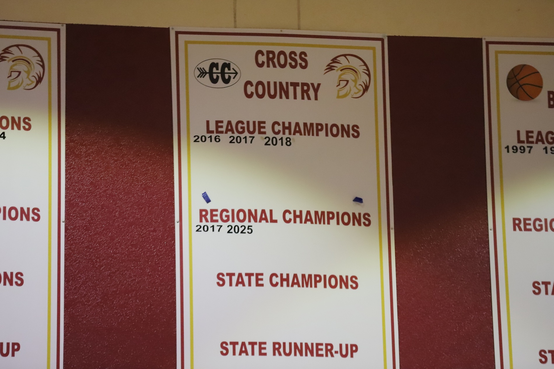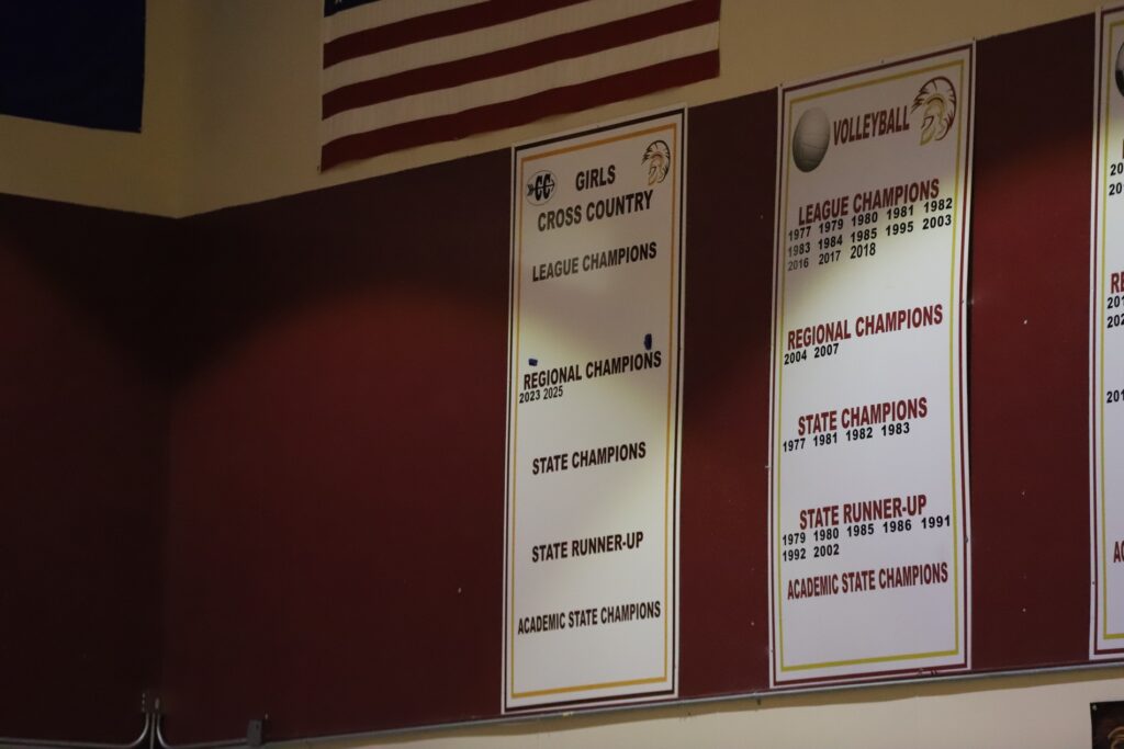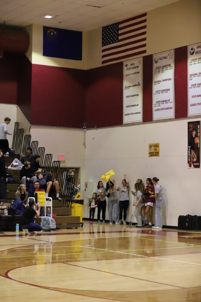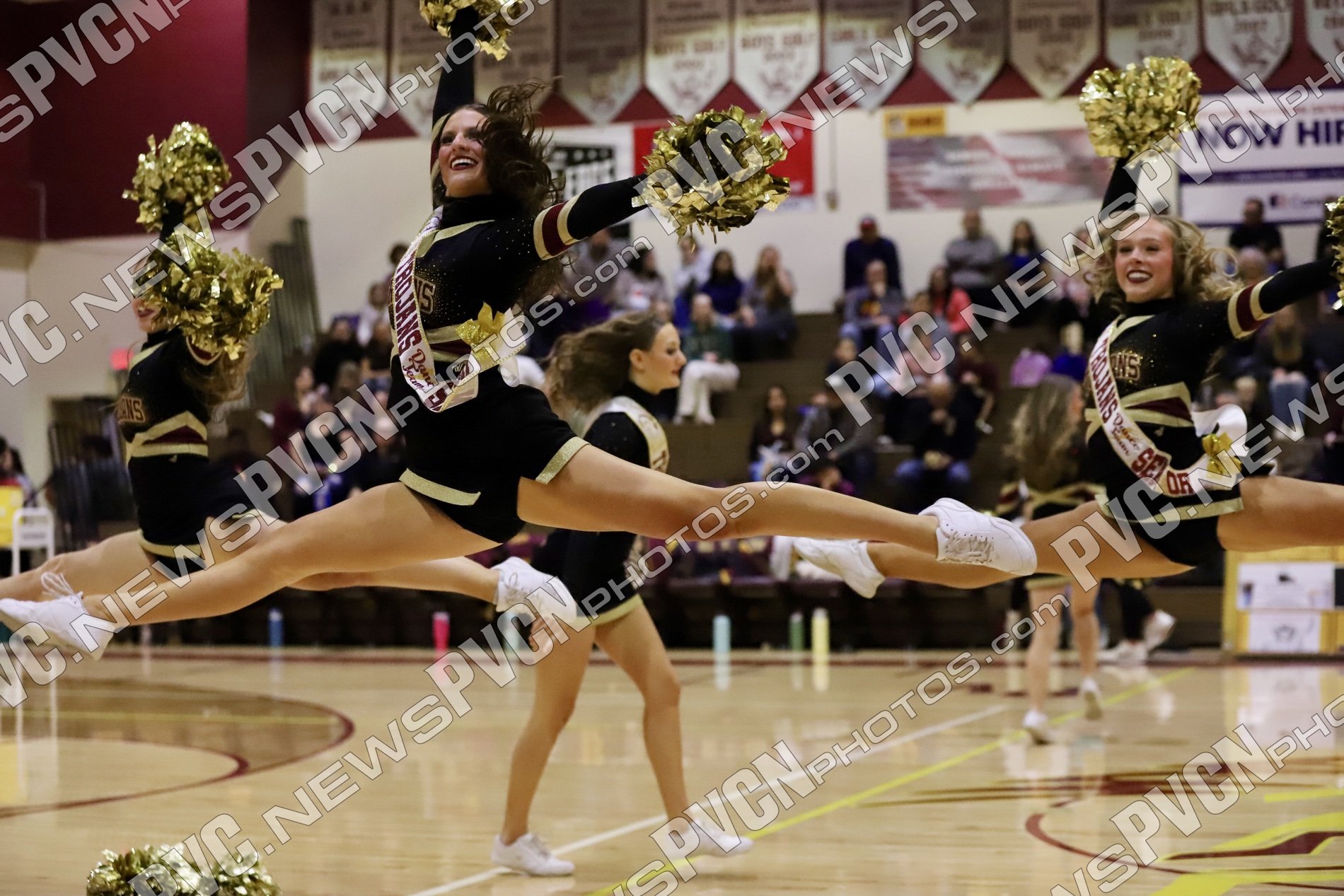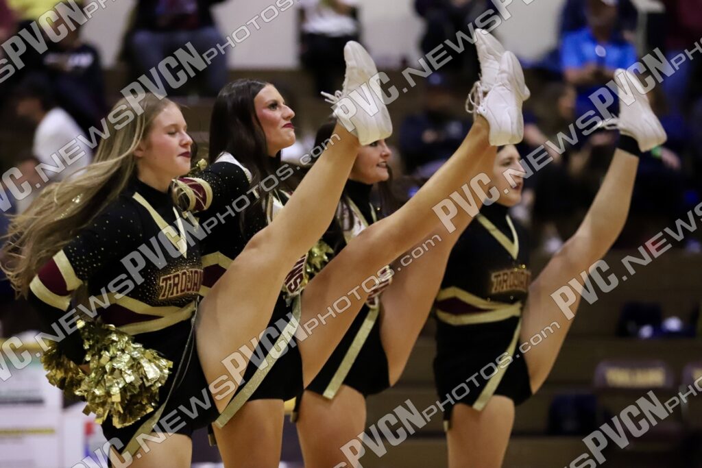 At halftime, the celebration of PVHS student achievement continued with a special banner drop ceremony honoring several Trojan programs. The PVHS Dance Team was recognized for its Regional Championship placement, highlighting the team’s successful competitive season. The recognition extended to both the boys and girls cross country teams, who were honored for capturing Regional Championship titles, the first time in school history that both teams won the Championship in the same year. The moment allowed the home crowd to celebrate the continued success of PVHS athletics, drawing loud applause as each banner was unveiled inside the gym. The dance team also performed a lively routine to keep the energy strong heading into the second half.