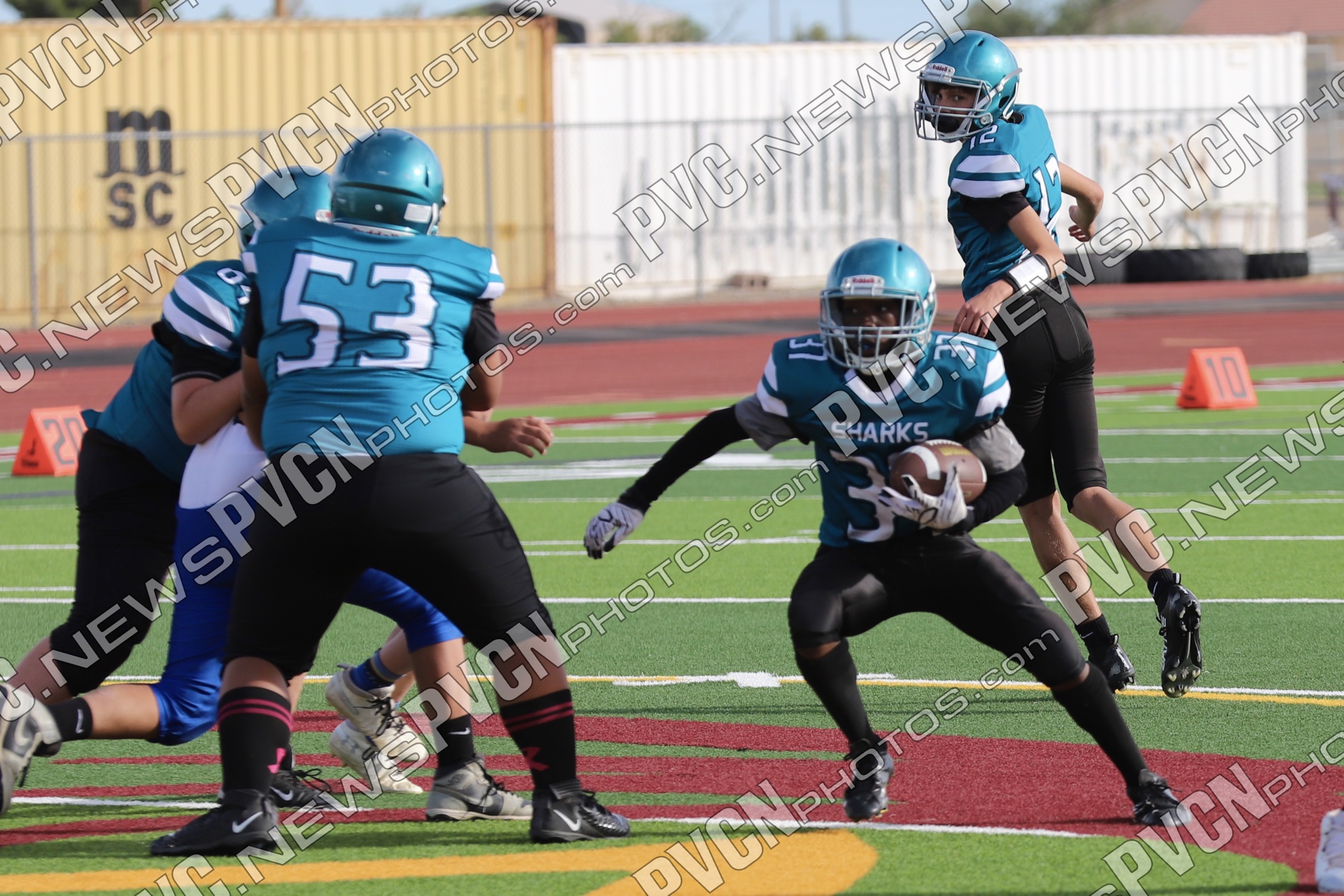 The Rosemary Clarke Middle School Sharks football team left everything on the field Friday night at Pahrump Valley High School, facing off against perennial powerhouse Alamo in the championship game. Despite a heartbreaking 22–14 loss, the Sharks played one of their most determined and hard-fought games of the season, showing heart, discipline, and teamwork until the final whistle.
