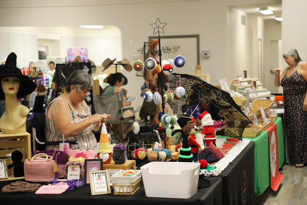 What makes Spooky Jingles stand out, however, is its heart for giving. Each year, vendors are asked to donate diapers or wipes as part of their booth fee, with all donations benefiting No To Abuse, a local nonprofit that provides essential support to families in need. Attendees are also encouraged to participate, contributing additional items throughout the weekend.